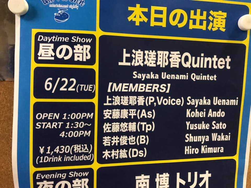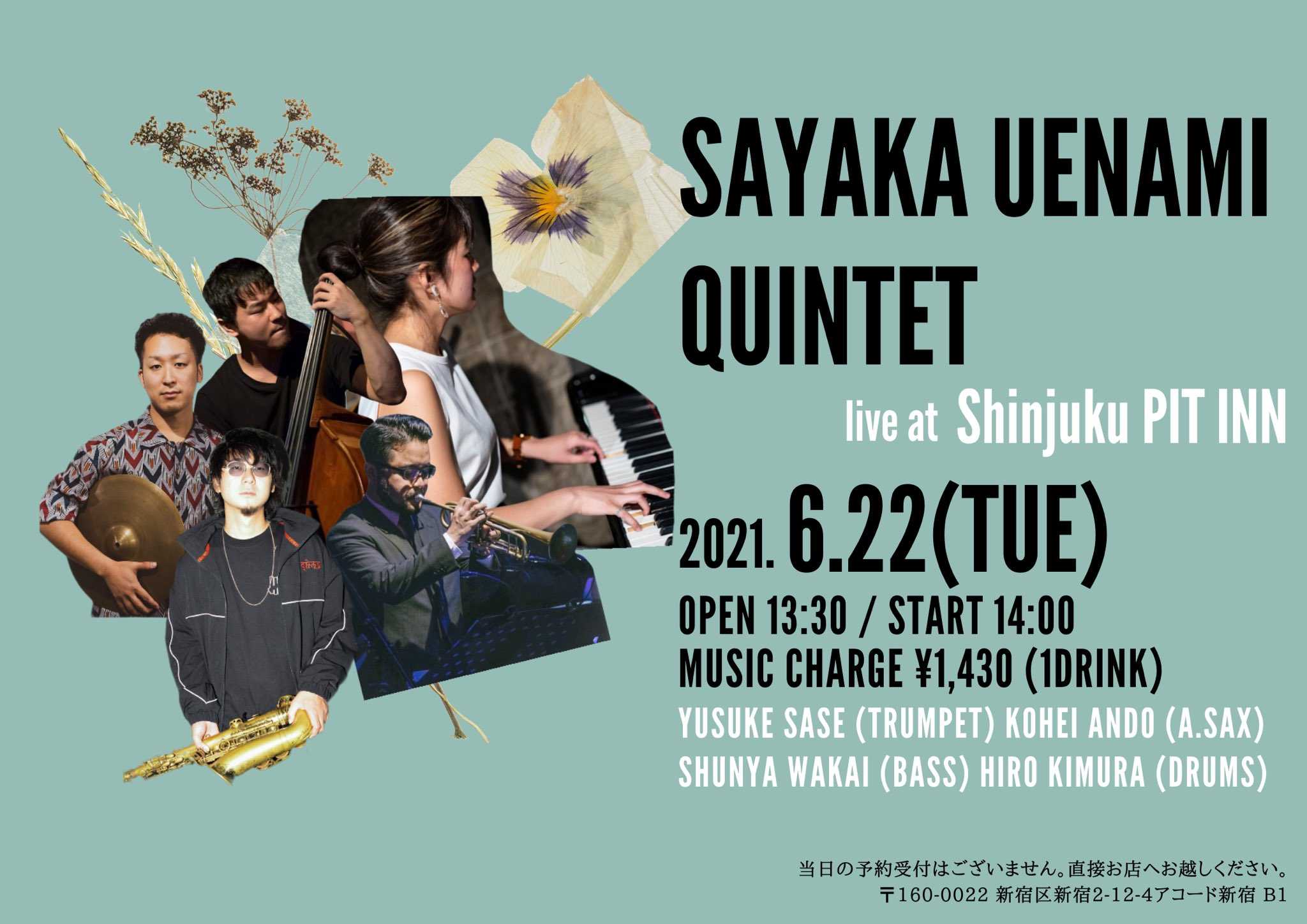 <<2021 Jun 22nd 上浪瑳耶香Quintet@新宿ピットイン>>
