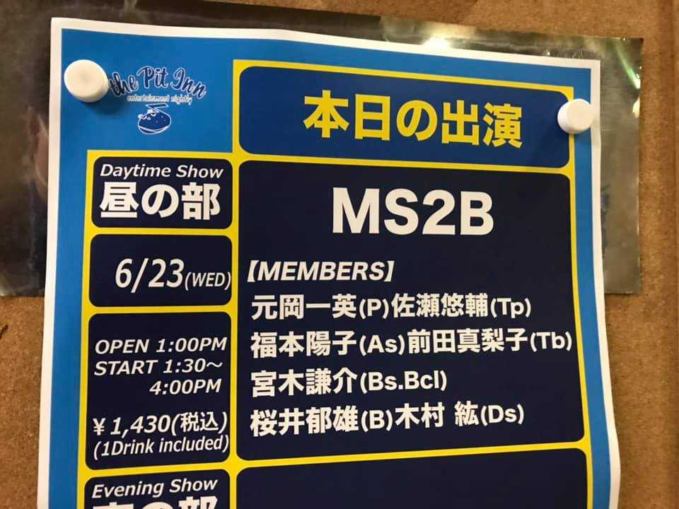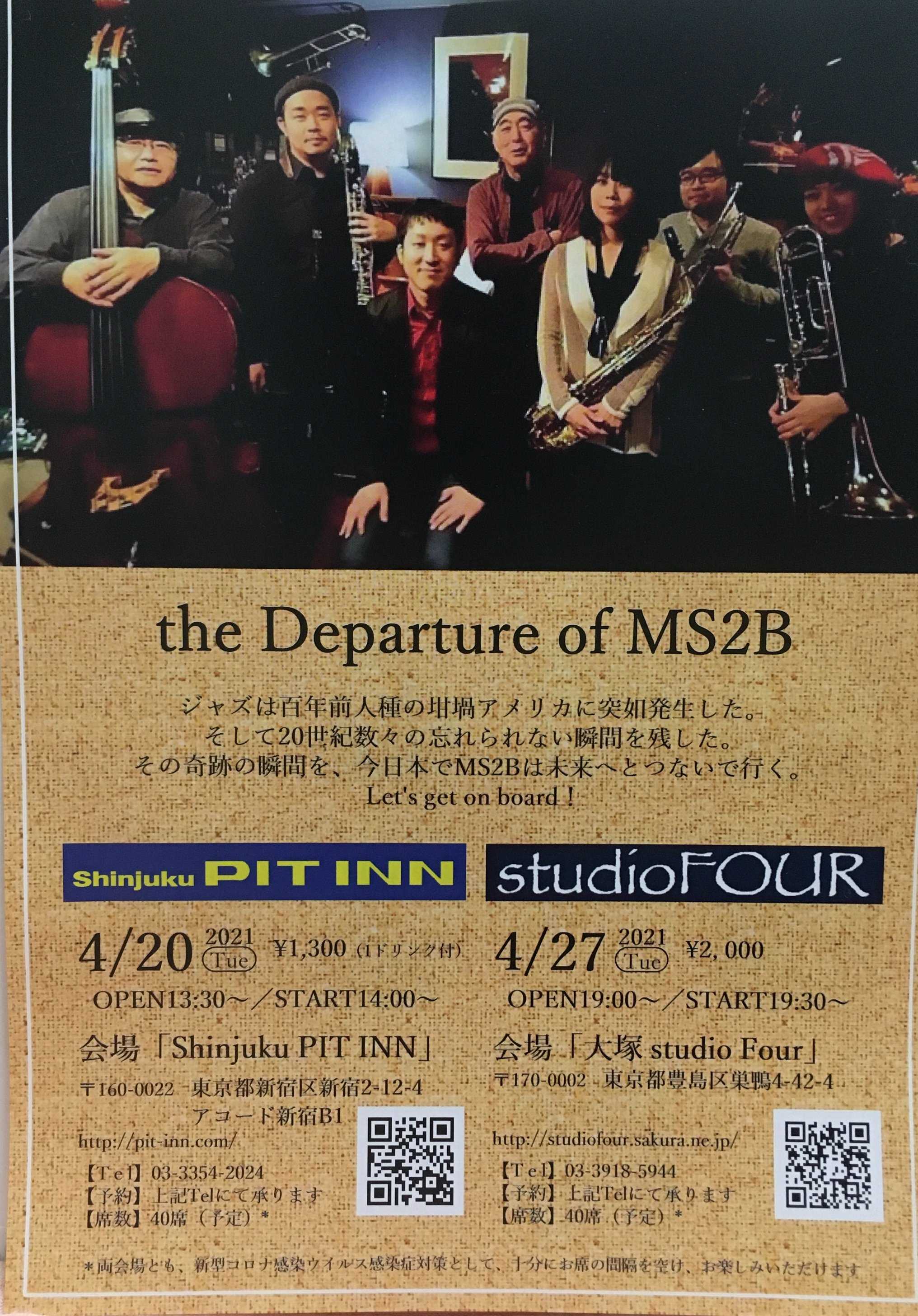 MS2Bは元岡さんをリーダーとするバンド。元岡さんがお好きな、Monk/J.J.Johnson/Thad Jones/Clifford Jordan/Miles DavisなどのJAZZスタンダードと元岡さんのオリジナルが演奏される。JAZZスタンダードも渋い選曲であまり他では聴かれない優れモノ。
