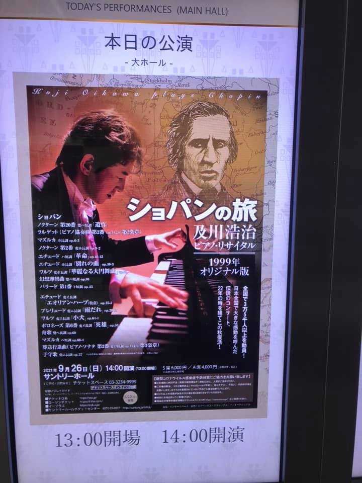 2021年9月26日(日) 及川浩治ピアノ・リサイタル「ショパンの旅」~1999年オリジナル版~@サントリーホール