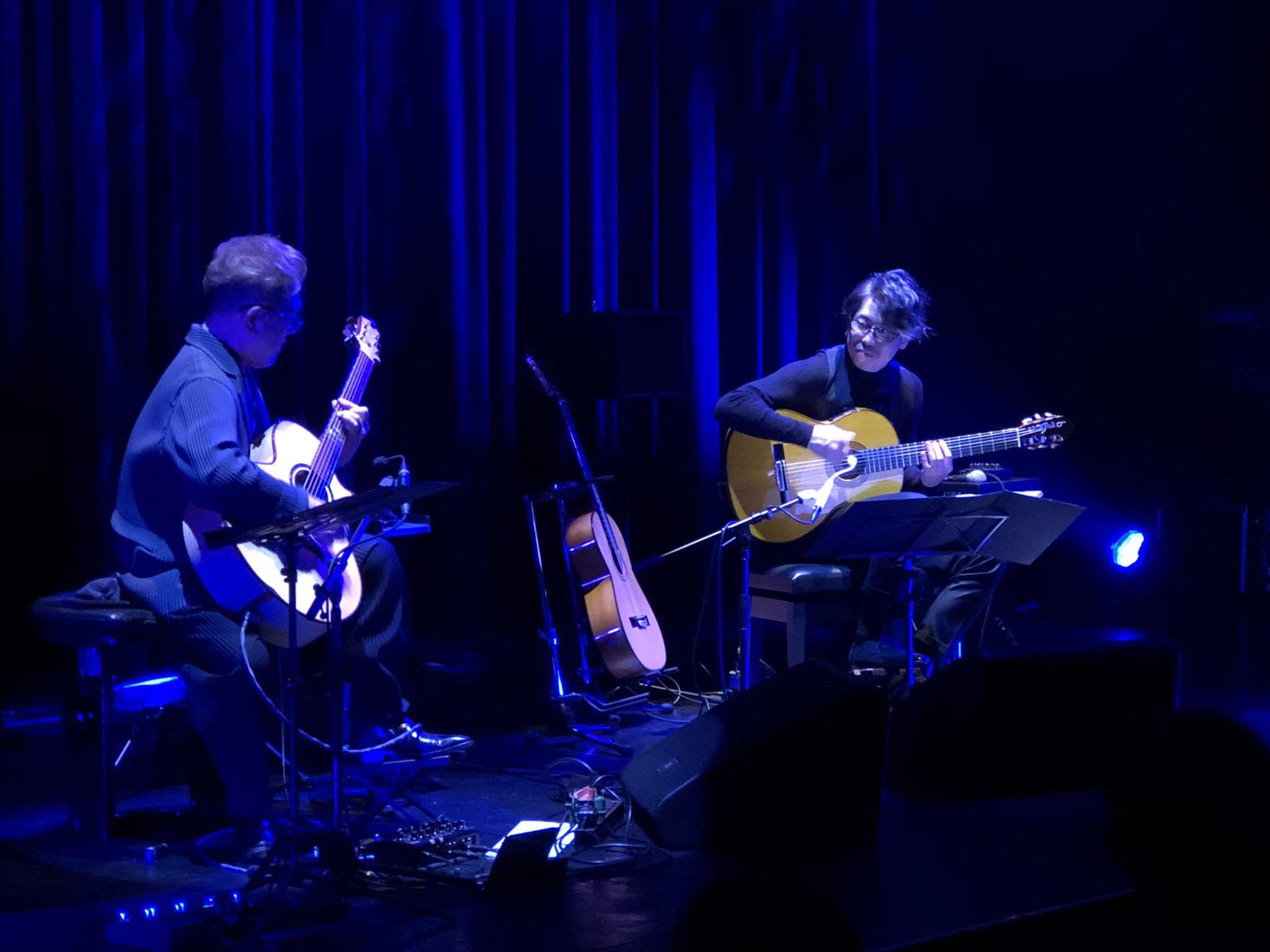Larry Coryellと香津美さんが会ったのは雑誌のインタビューの対談。香津美さんが「僕もギター弾きます」とインタビューの初めに言ったのに、Larryは対談中はスッカリ忘れていて、終わりの頃に「君もギターを弾くのか?」と言い出す始末。対談もソコソコにお二人の「Zimbabwe-Larry Coryell--Tributaries 1979」のセッションがユニゾンでイキナリ始まる。またLarryが「なんで君はこの曲を知っているのか?」と聞いてきたが、「僕はずっとLarryさんのアコースティックアルバム、Tributariesを聴き込んできたんです」と答えたらしい。
