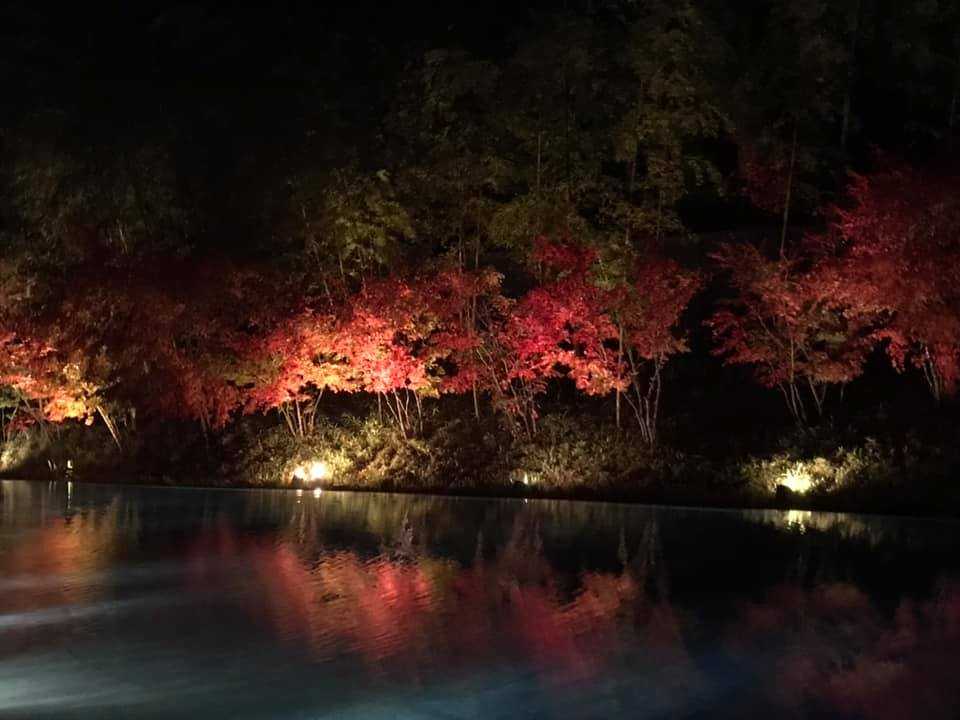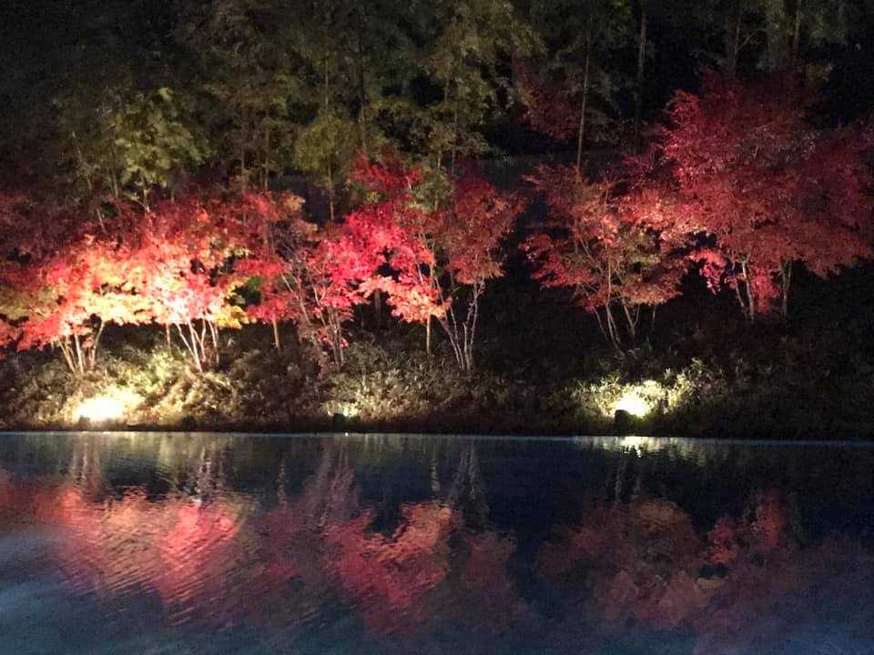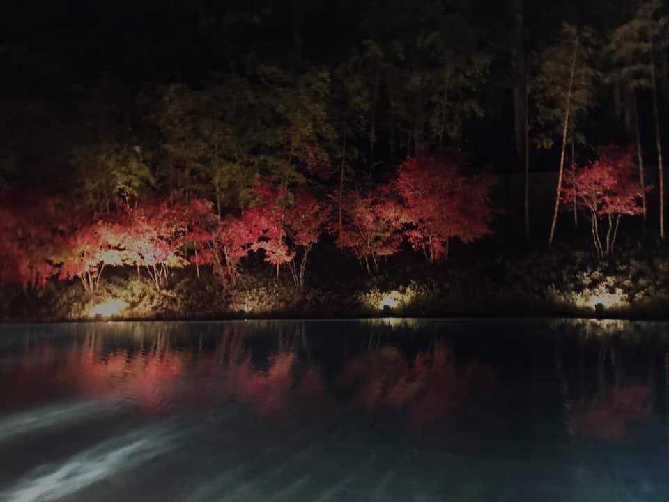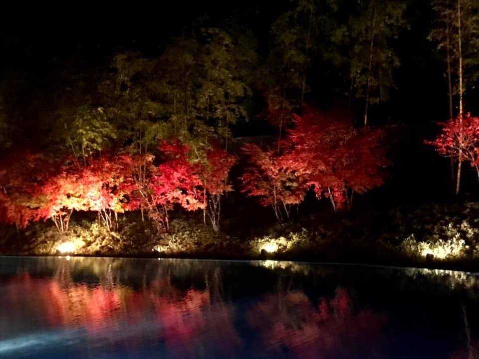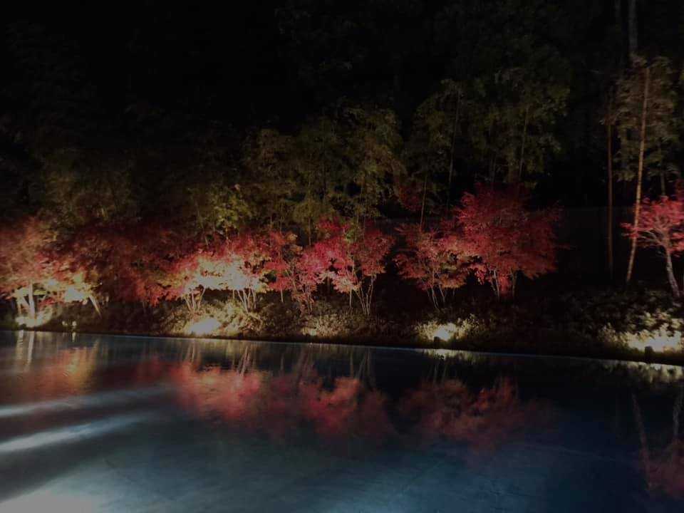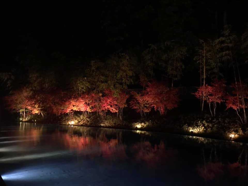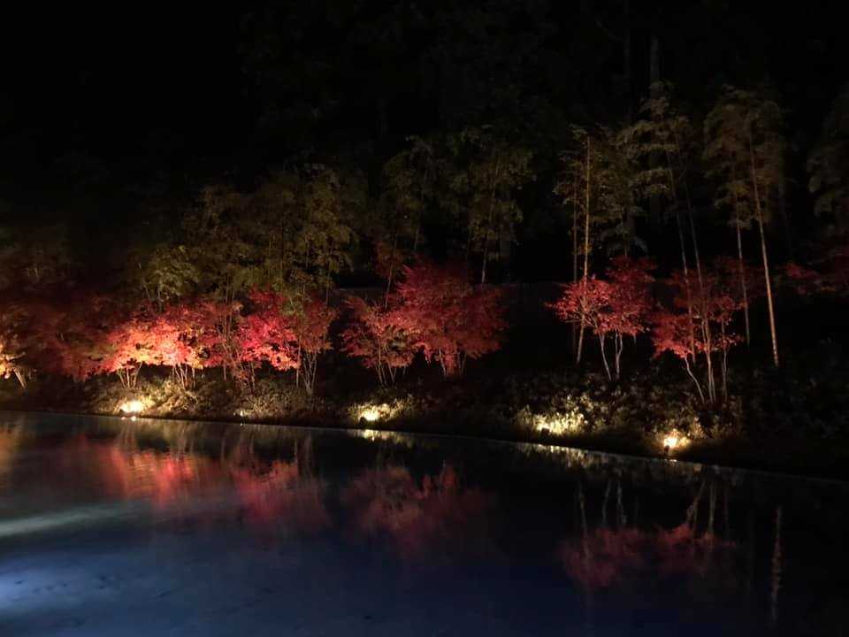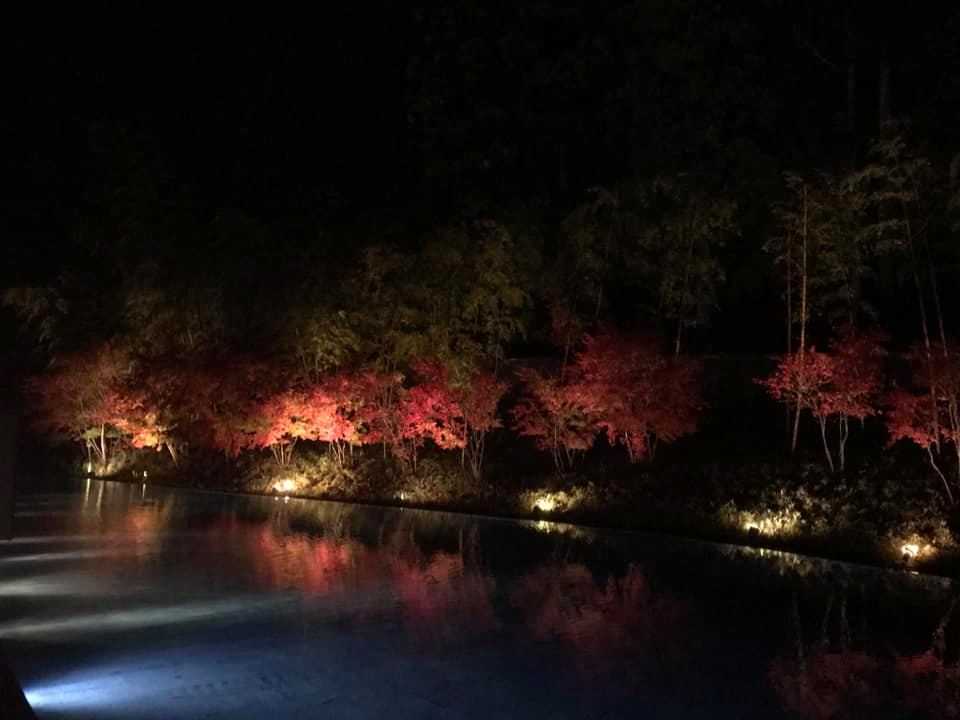 京都の嵯峨野の竹林も雨で緑が映えるが、こちらの紅葉も雨でまたヒトキワ映える。