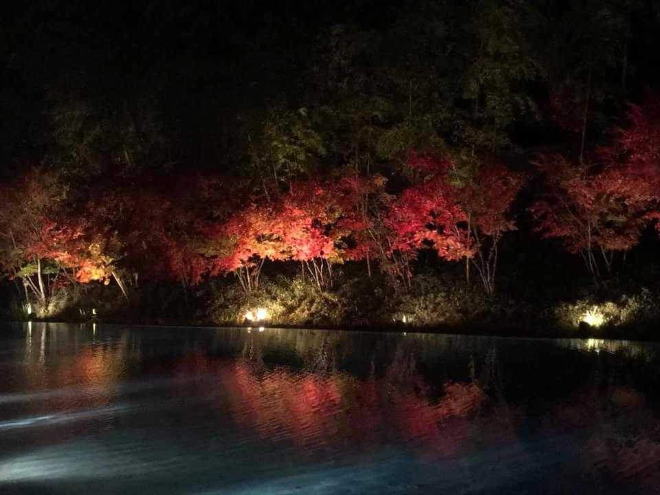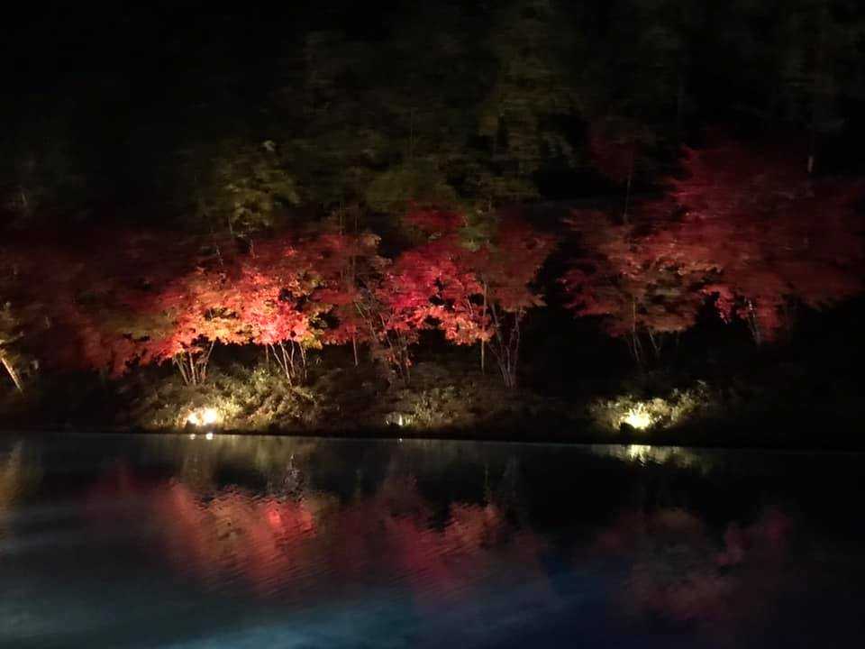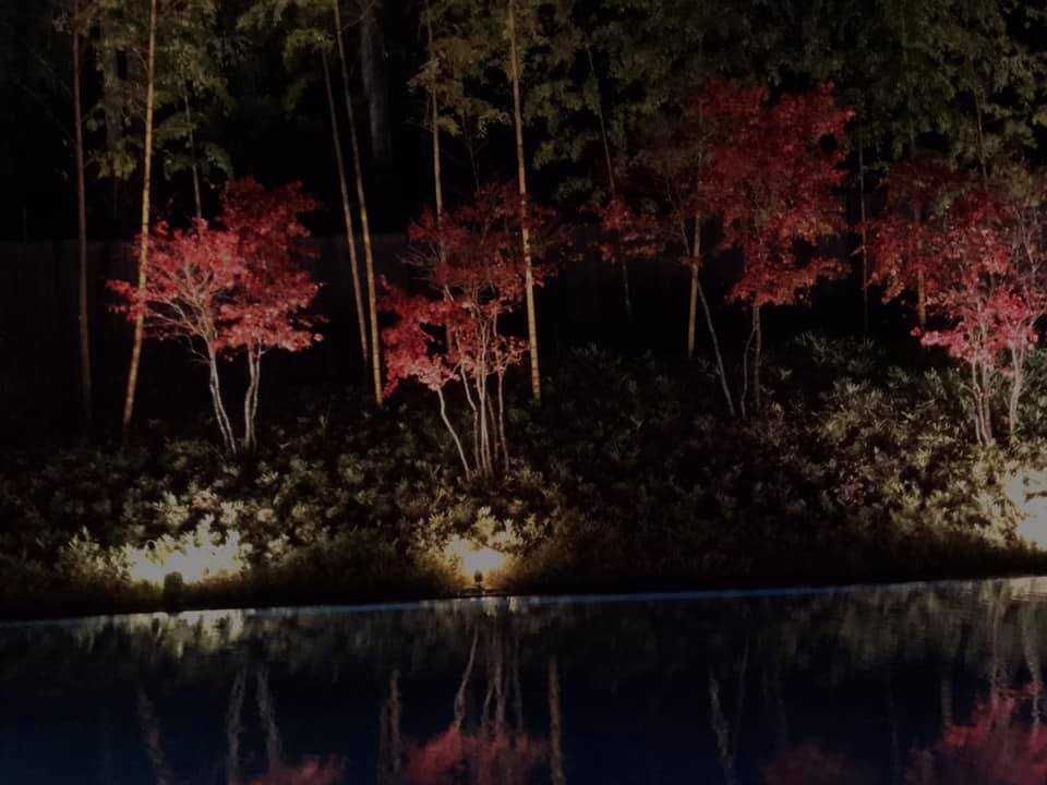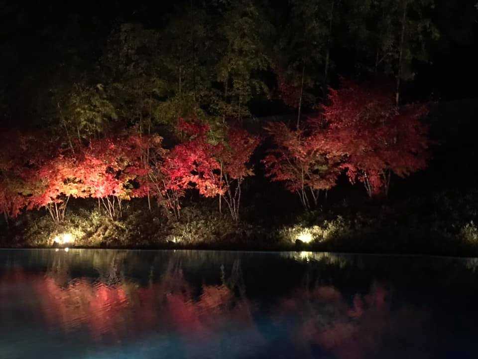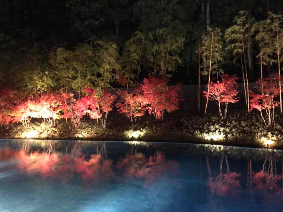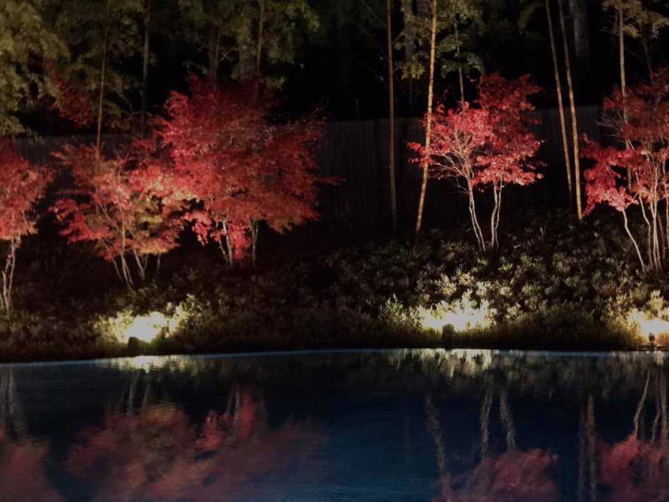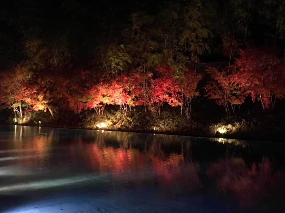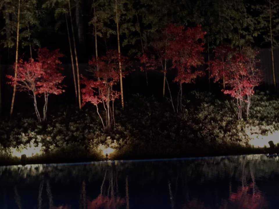 京都の嵯峨野の竹林も雨で緑が映えるが、こちらの紅葉も雨でまたヒトキワ映える。