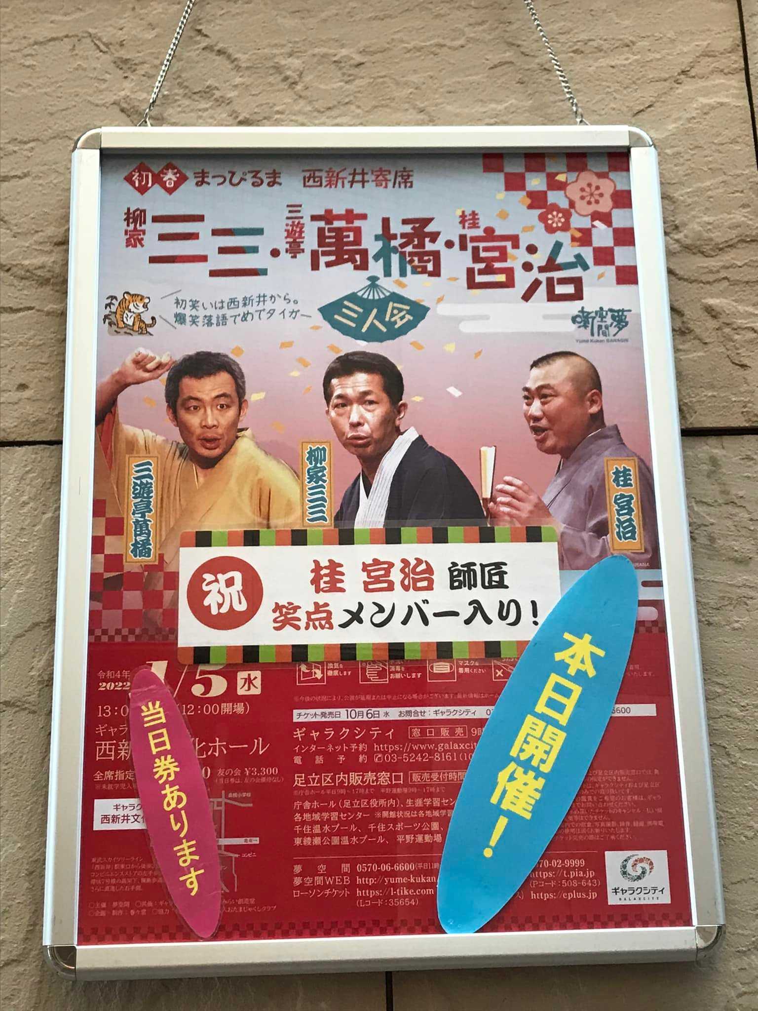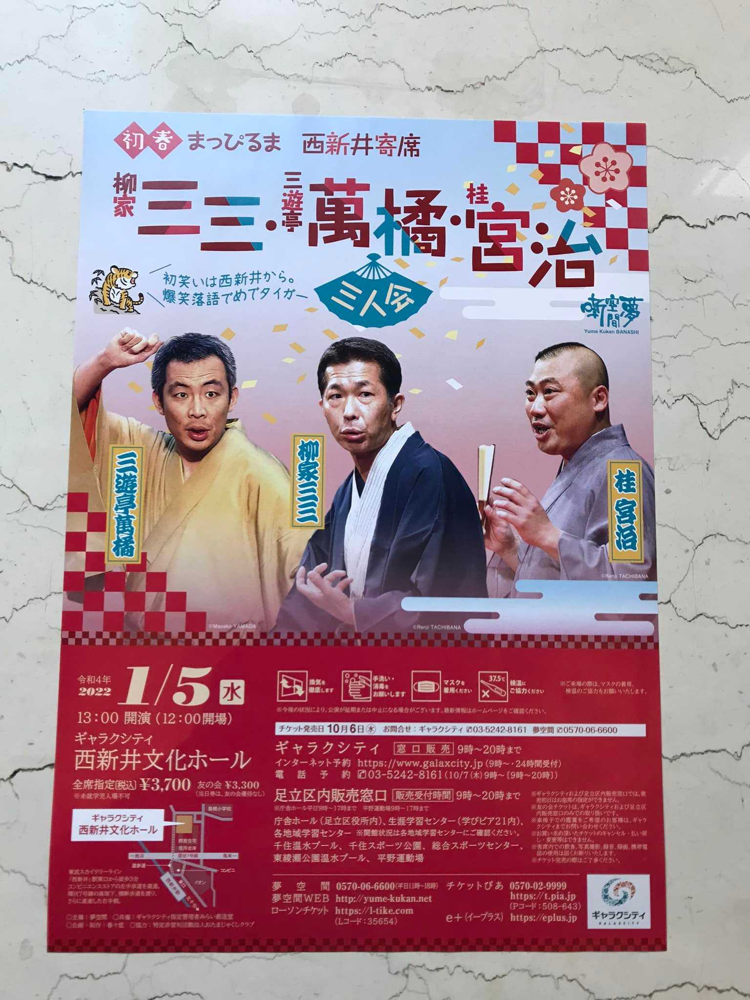 ​2022/01/05@「初春まっぴるま西新井寄席 柳家三三 三遊亭萬橘 桂宮治 三人会」@西新井文化センター