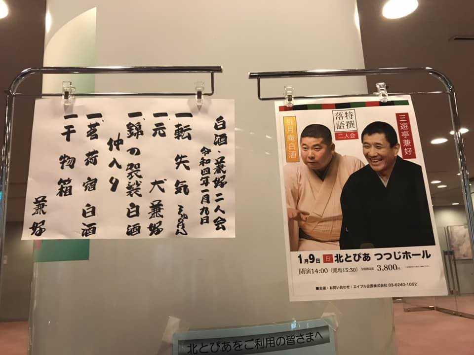 ​2022/1/9@北とぴあ 特撰落語会 桃月庵白酒・三遊亭兼好 二人会