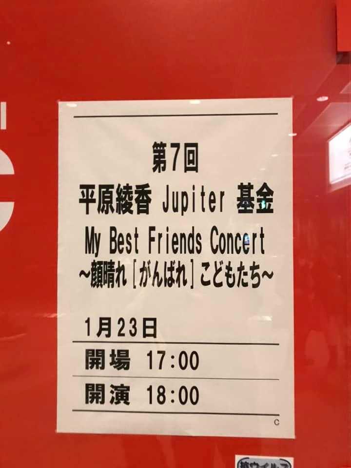 1月23日(日)「第7回 平原綾香 Jupiter 基金 My Best Friends Concert ~顔晴れ(がんばれ)こどもたち スペシャルゲスト:さだまさし」@東京国際フォーラム・ホールC