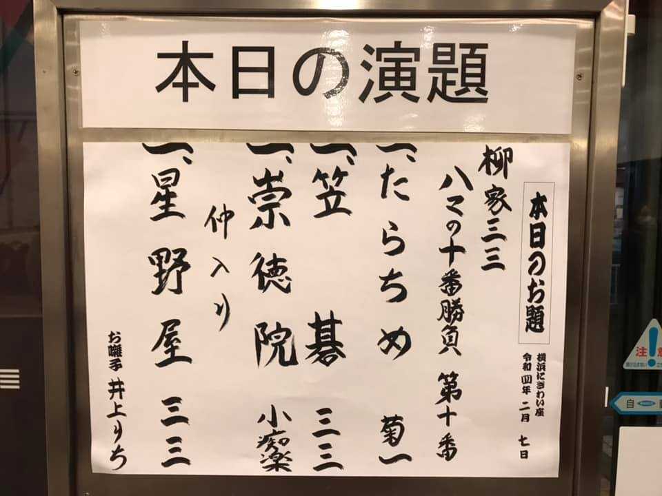 << 2022年2月7日「柳家三三 ハマの十番勝負」@横浜にぎわい座>>