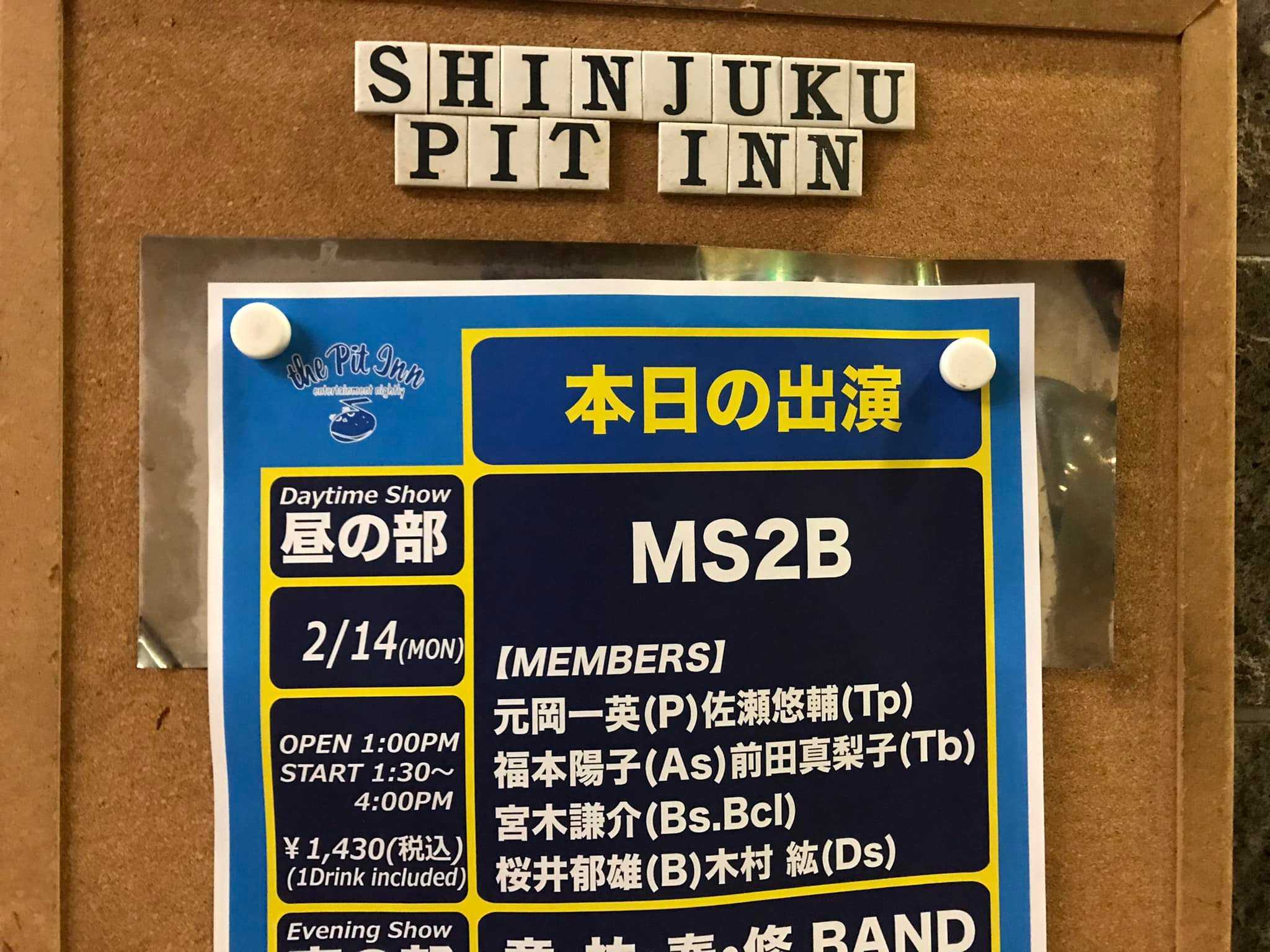 第一試合は元岡さんのバンドMS2Bを聴きに新宿ピットインに参上!