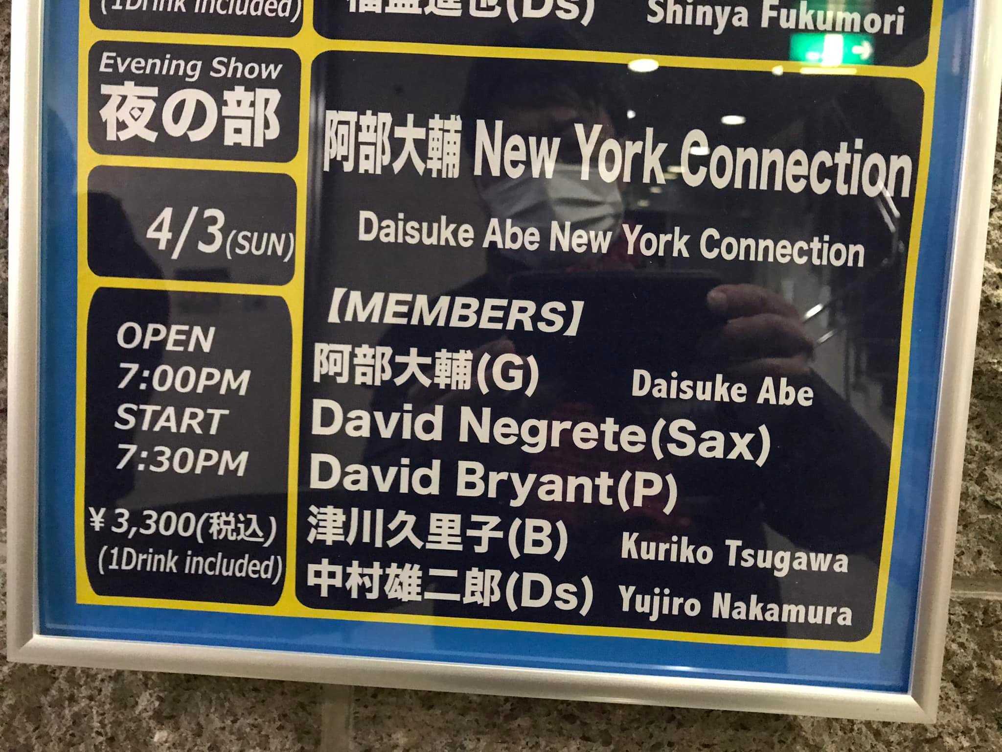 阿部大輔さん、津川久里子さんのご夫妻がNY時代からGigを繰り返した「勝手知ったる」お友達による見事なセッション。NYの香りがW David、Pf David Bryantさん、As David Negreteさんの音にシッカリと表出。関西から駆け付けた中村雄二郎さんの軽妙でゴキゲンなBeatを間近で聴けて至福の時。