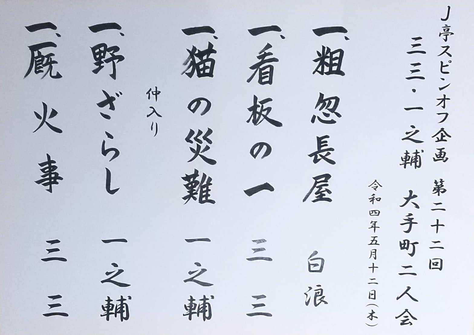 ​2022/5/12@日経ホールJ亭スピンオフ企画22 三三・一之輔 大手町二人会