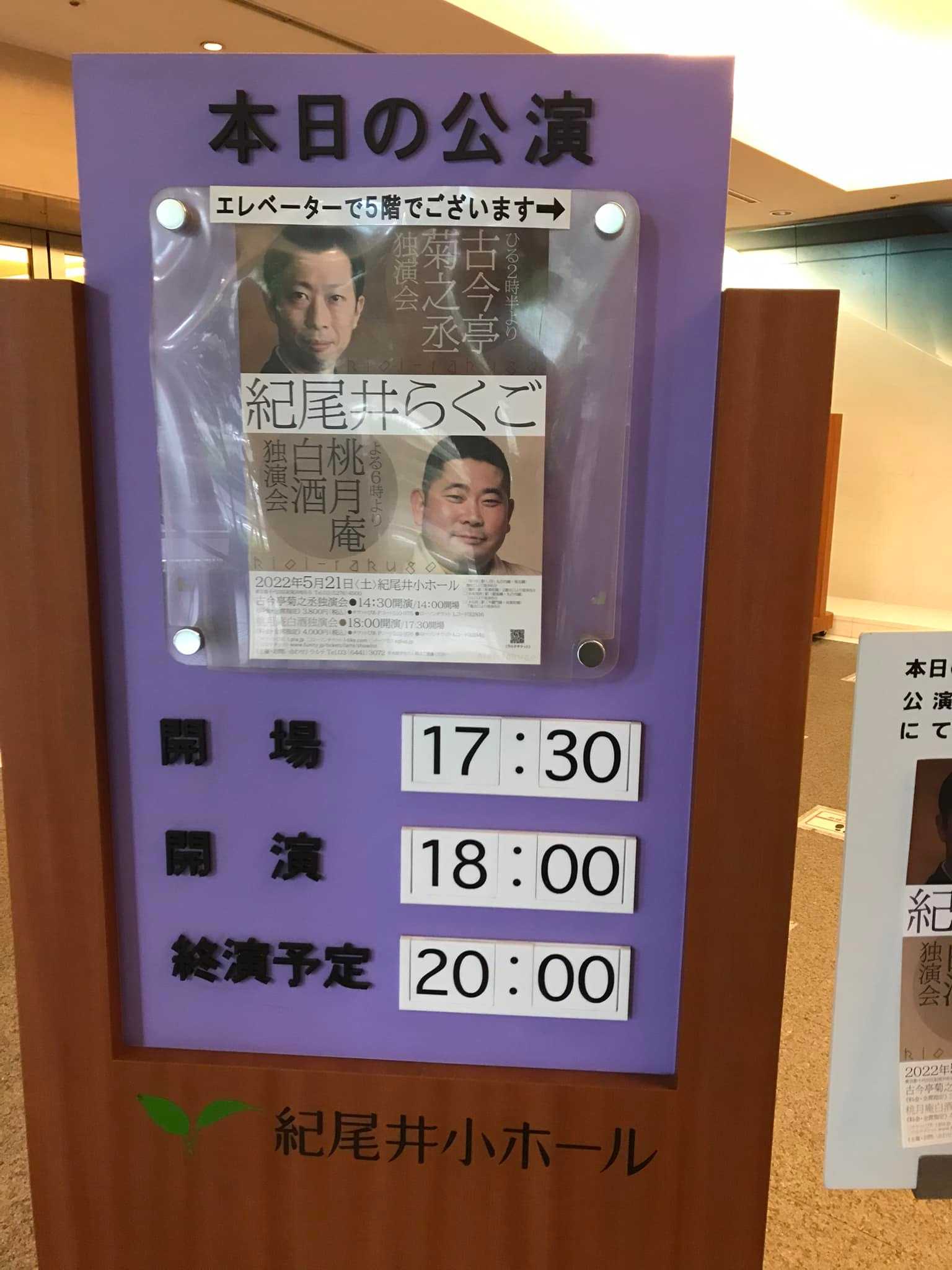 ​2022.5.21 紀尾井落語「桃月庵白酒独演会」@紀尾井小ホール​