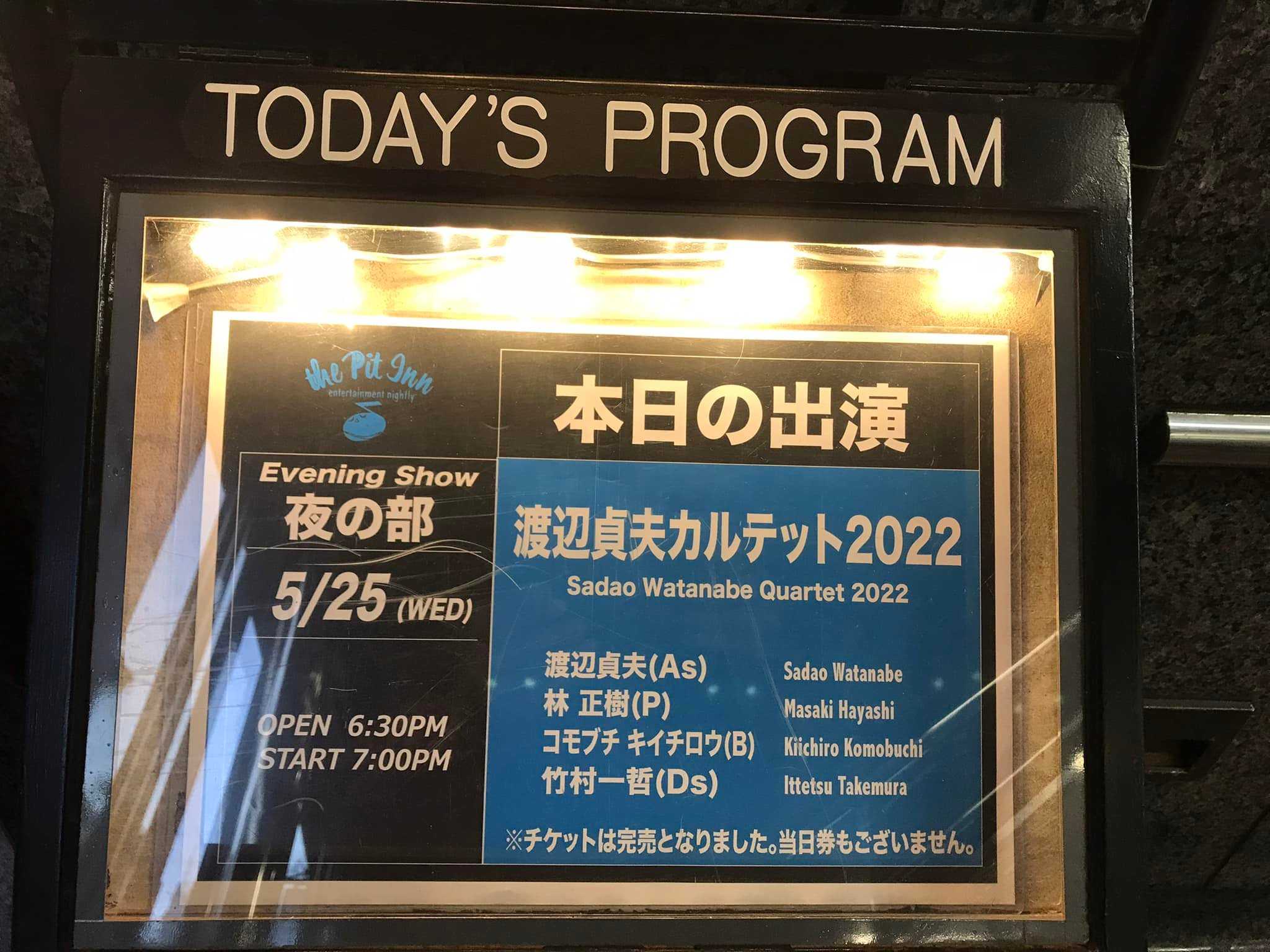 << 2022 May 25th /SADAO WATANABE QUARTET 2022 @新宿ピットイン>>