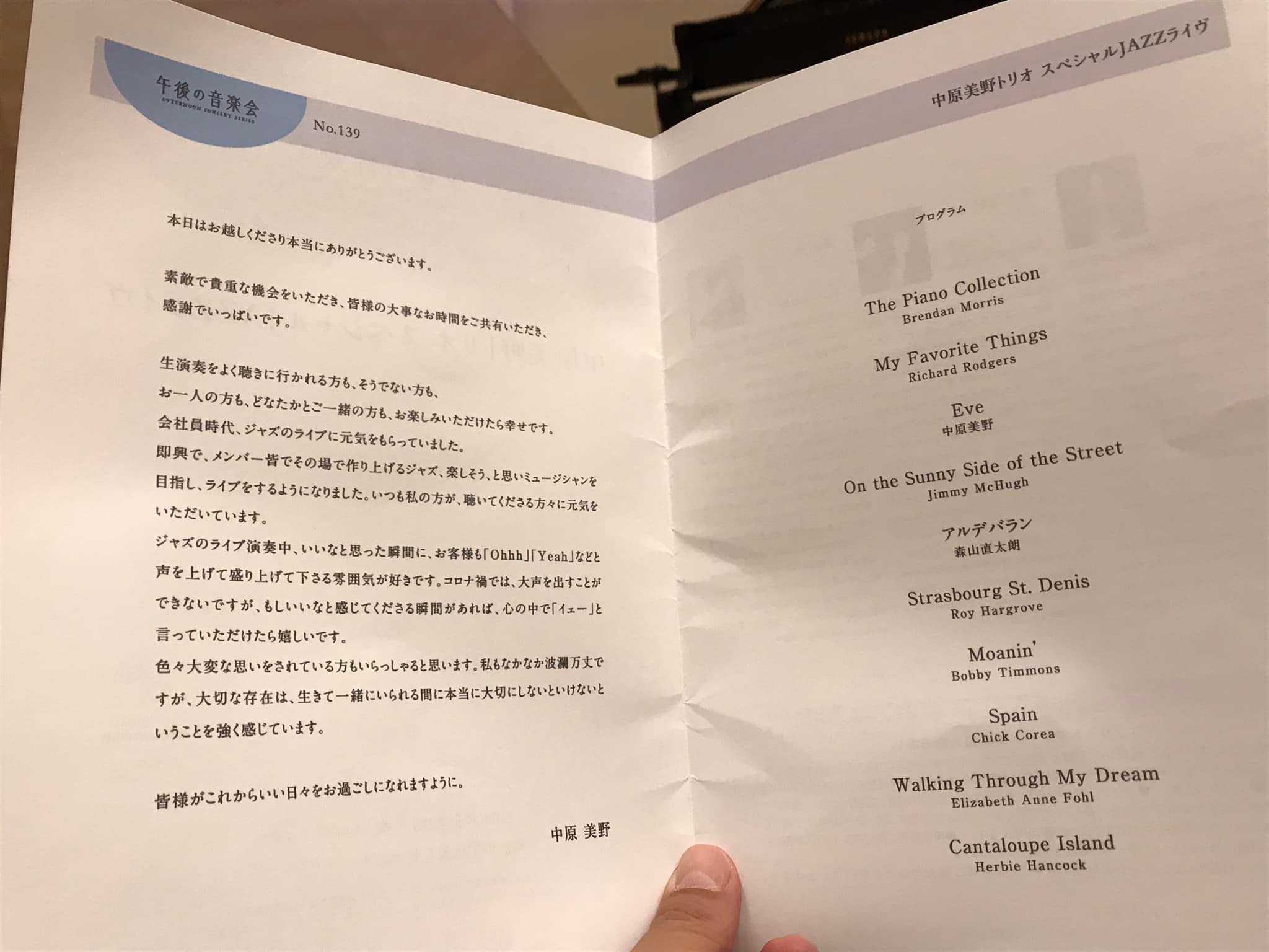 本日は中原美野さんのトリオを聴きにリリスホールに参上!