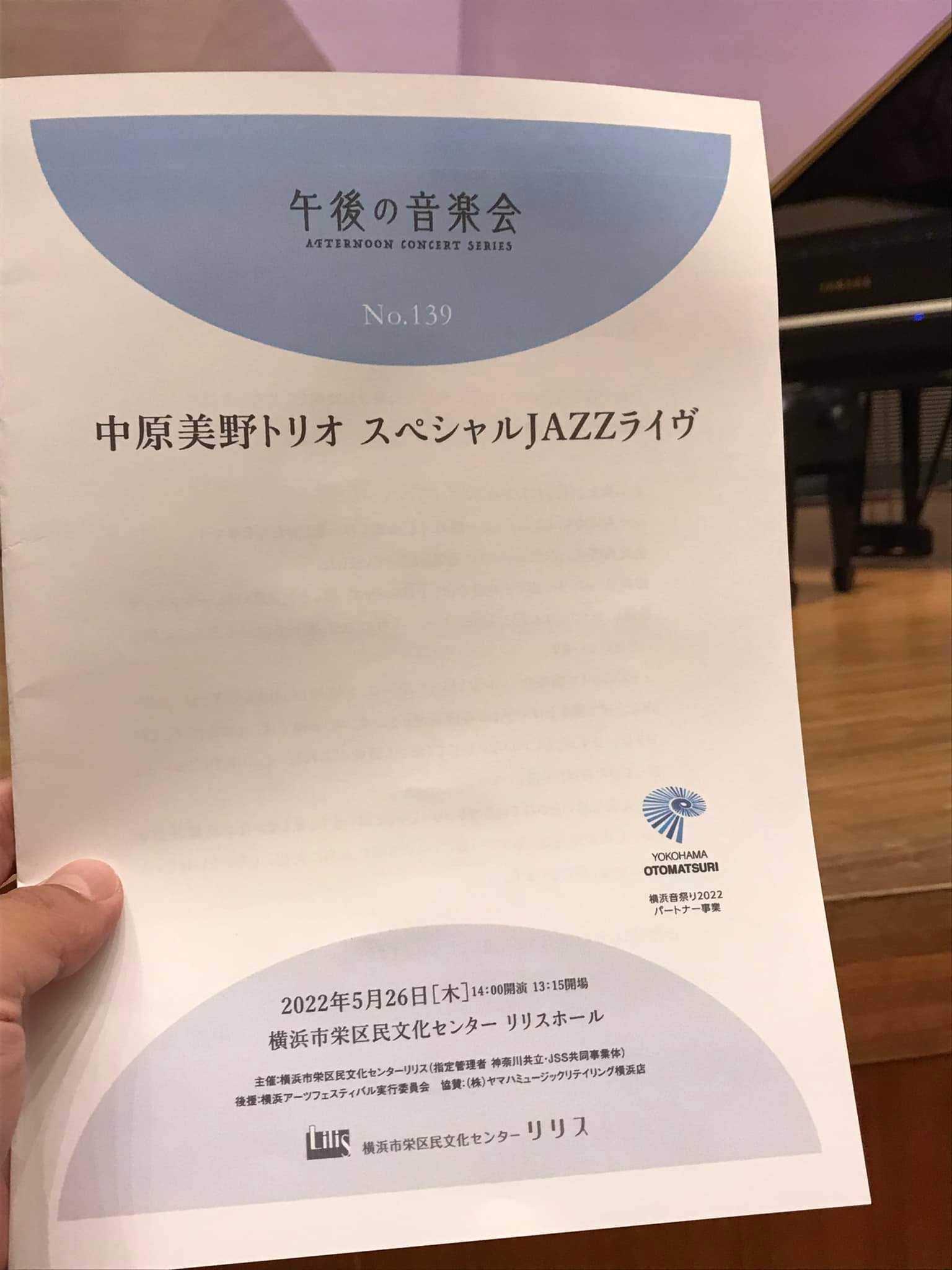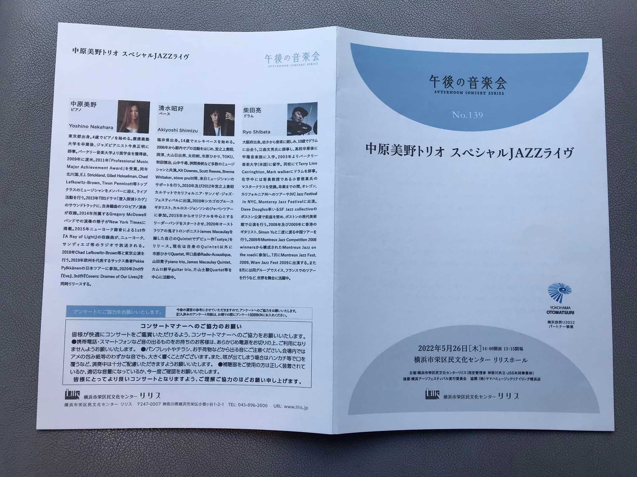 2022年5月26日 中原美野トリオ Special Jazzライブ@横浜栄区民文化センター「リリス」