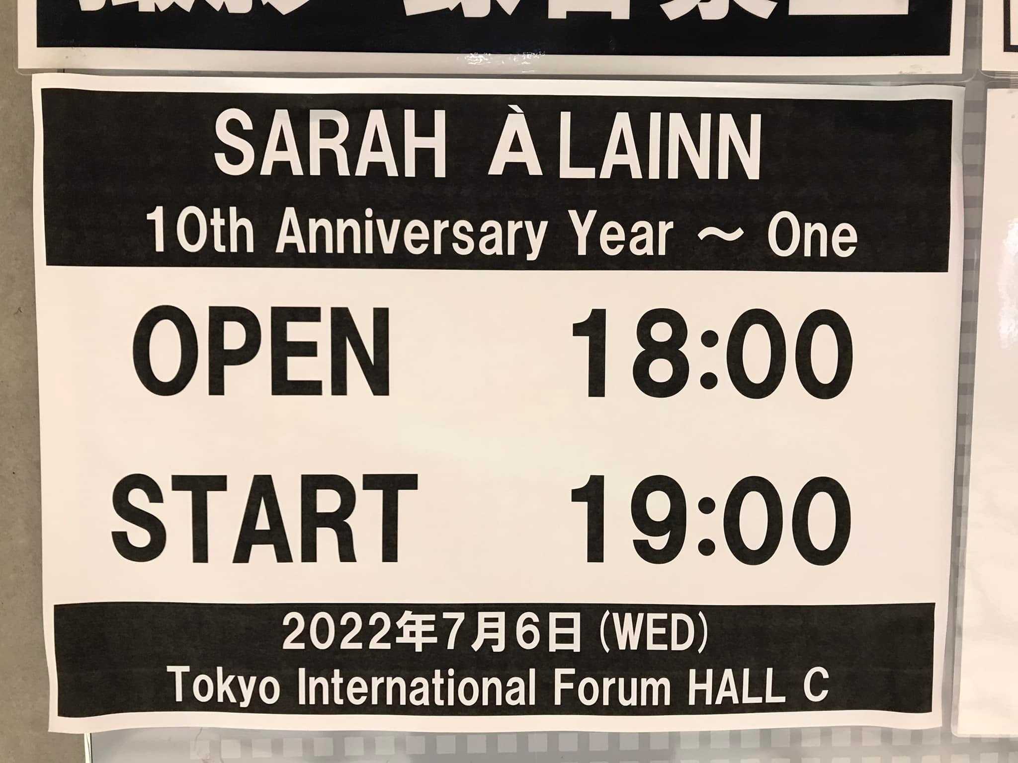​2022 Jul 6th SARAH ÀLAINN 10th Anniversary 〜 One@東京国際フォーラムホールC