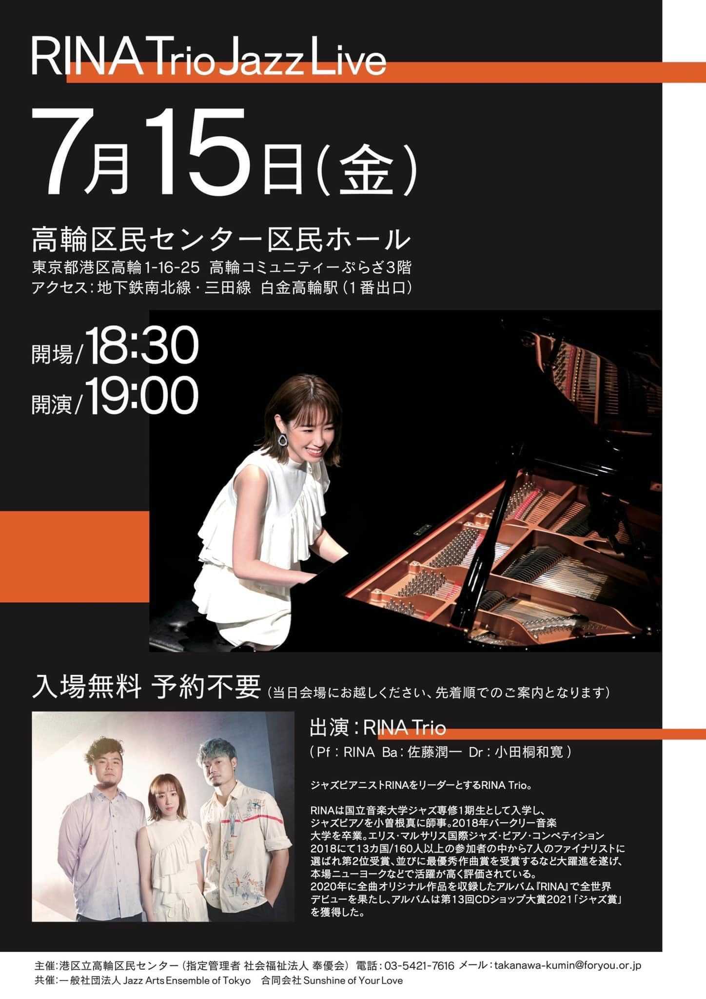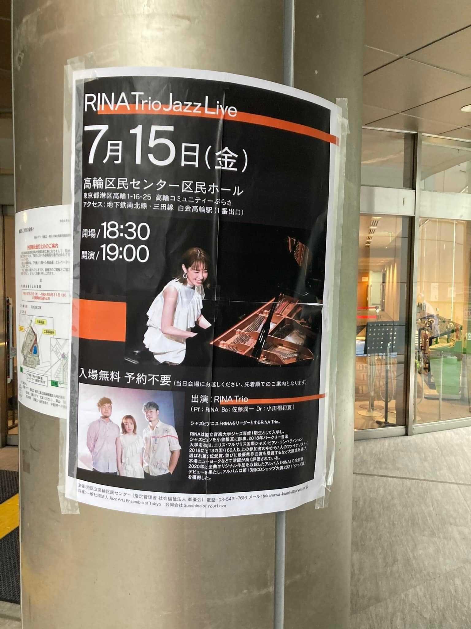 <<2022 Jul 15th/ RINA Trio Jazz Live@高輪区民センター 区民ホール>>