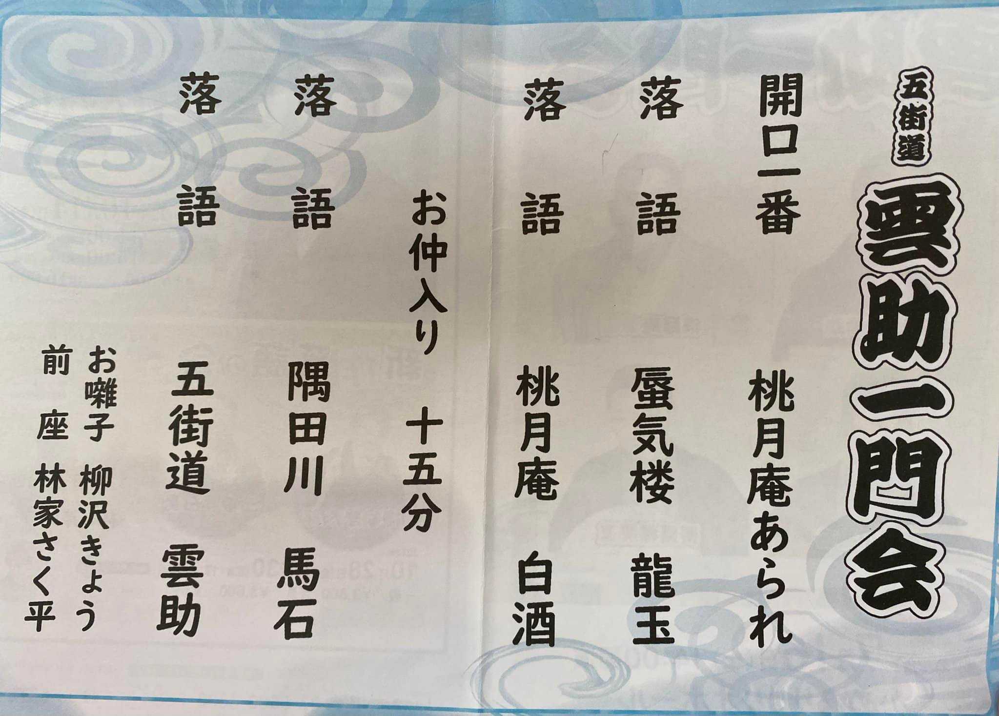 ダブルヘッダーの第一試合は亀有のリリオホールで、 五街道雲助一門会。