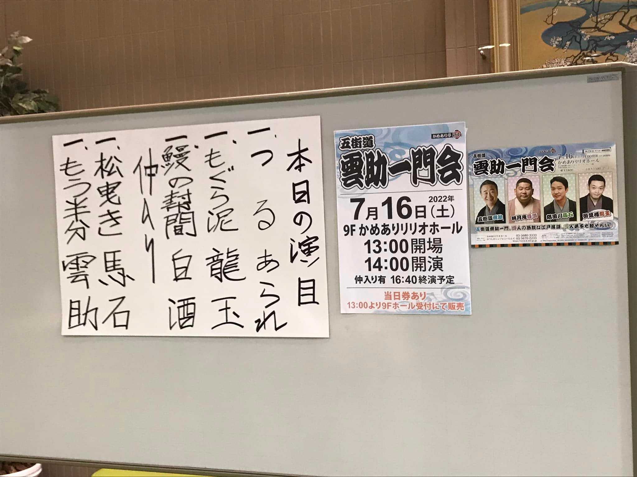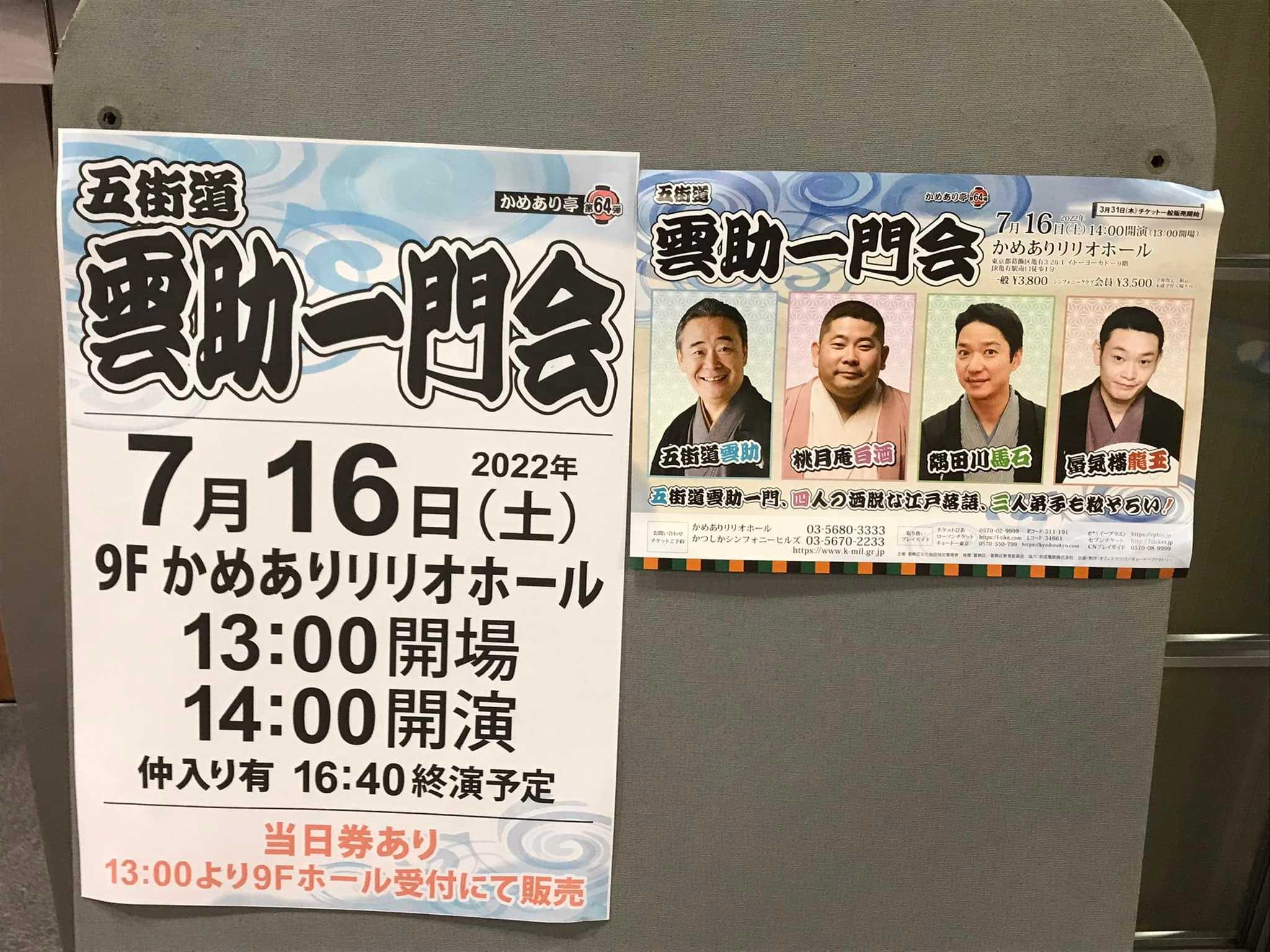 ​《2022 Jul 16th Sat / 五街道雲助一門会@かめありリリオホール》