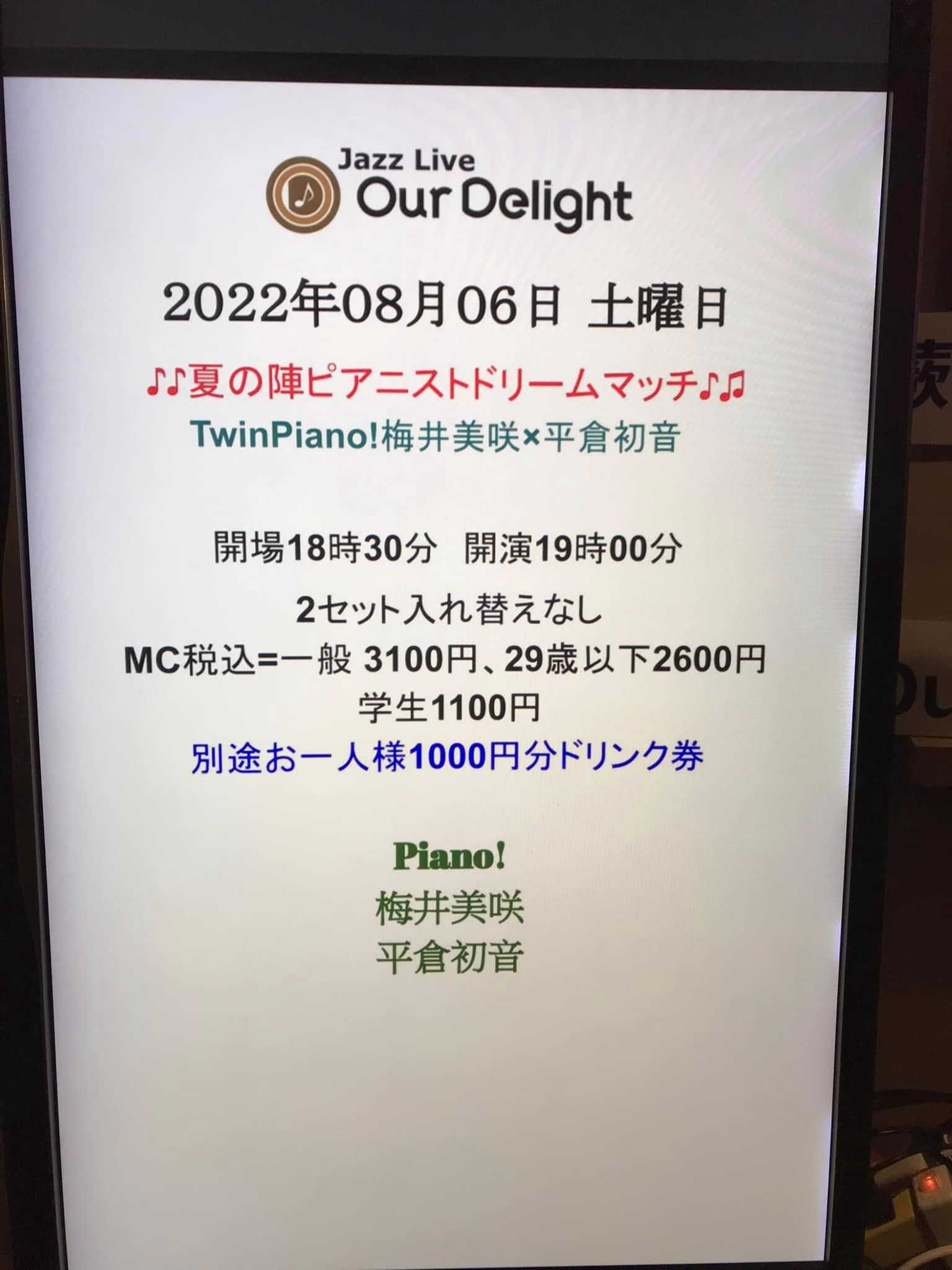 ​<< 2022 Aug 6th Sat/ TwinPiano!梅井美咲×平倉初音@蕨Our Delight >>