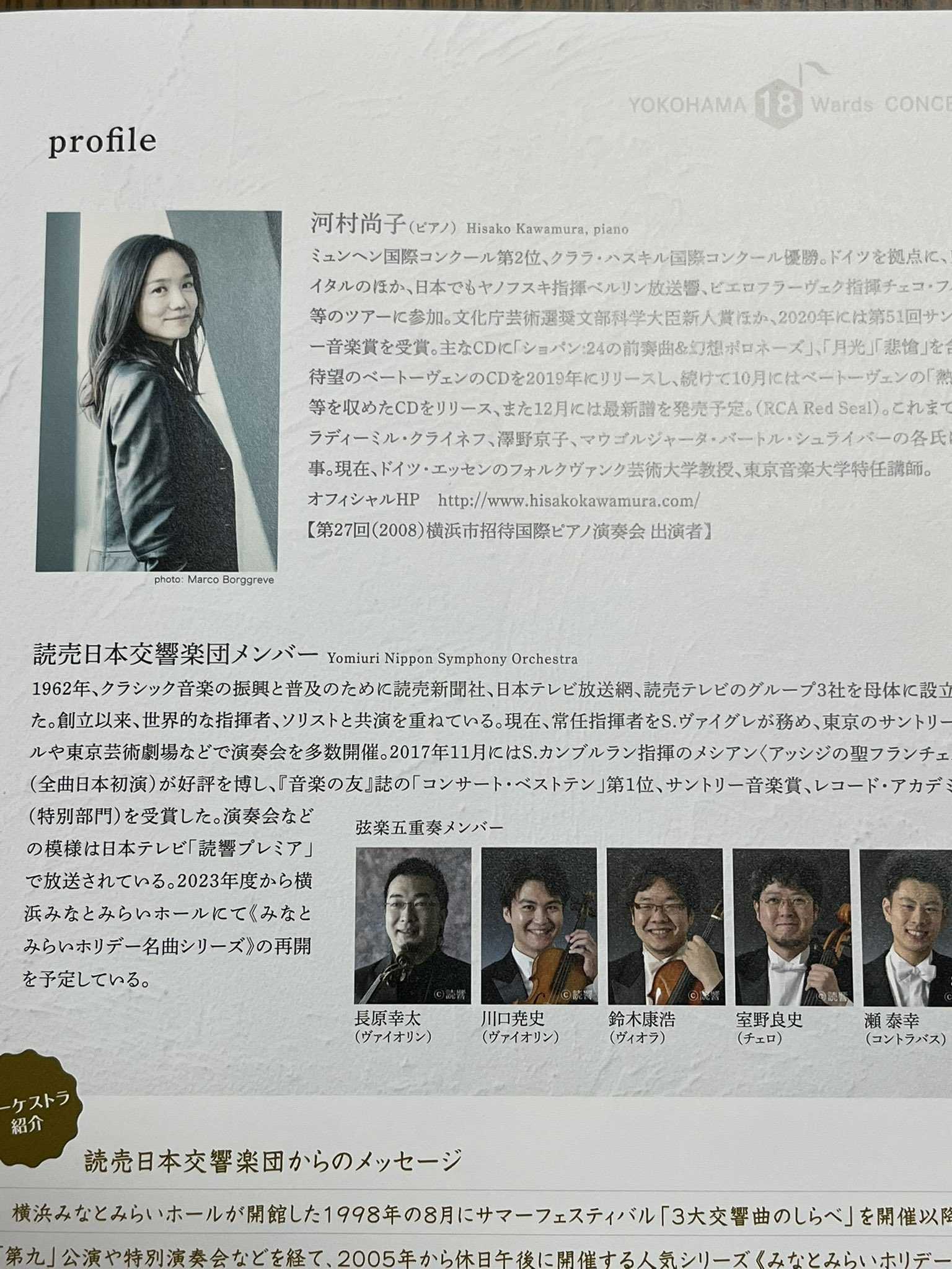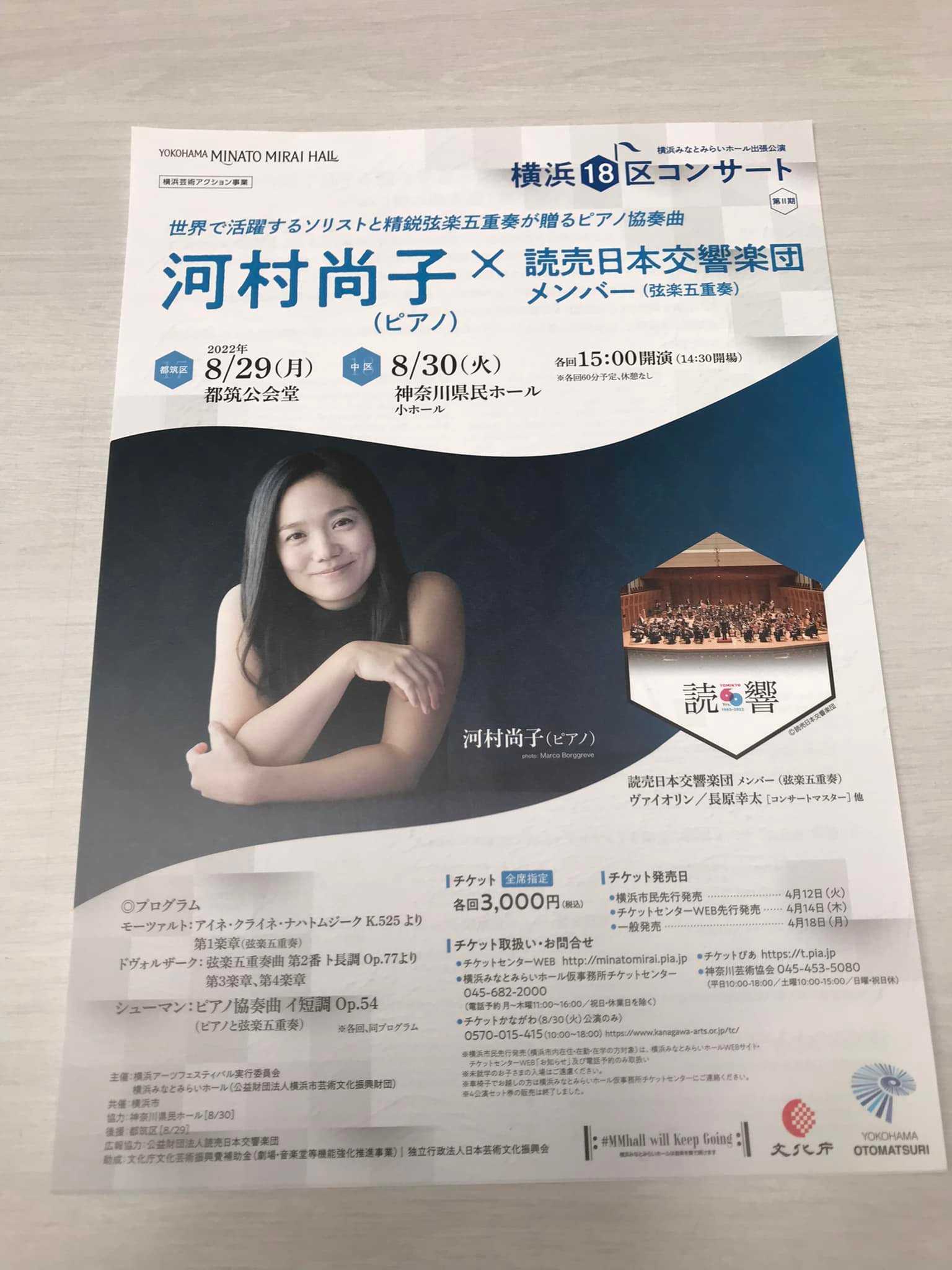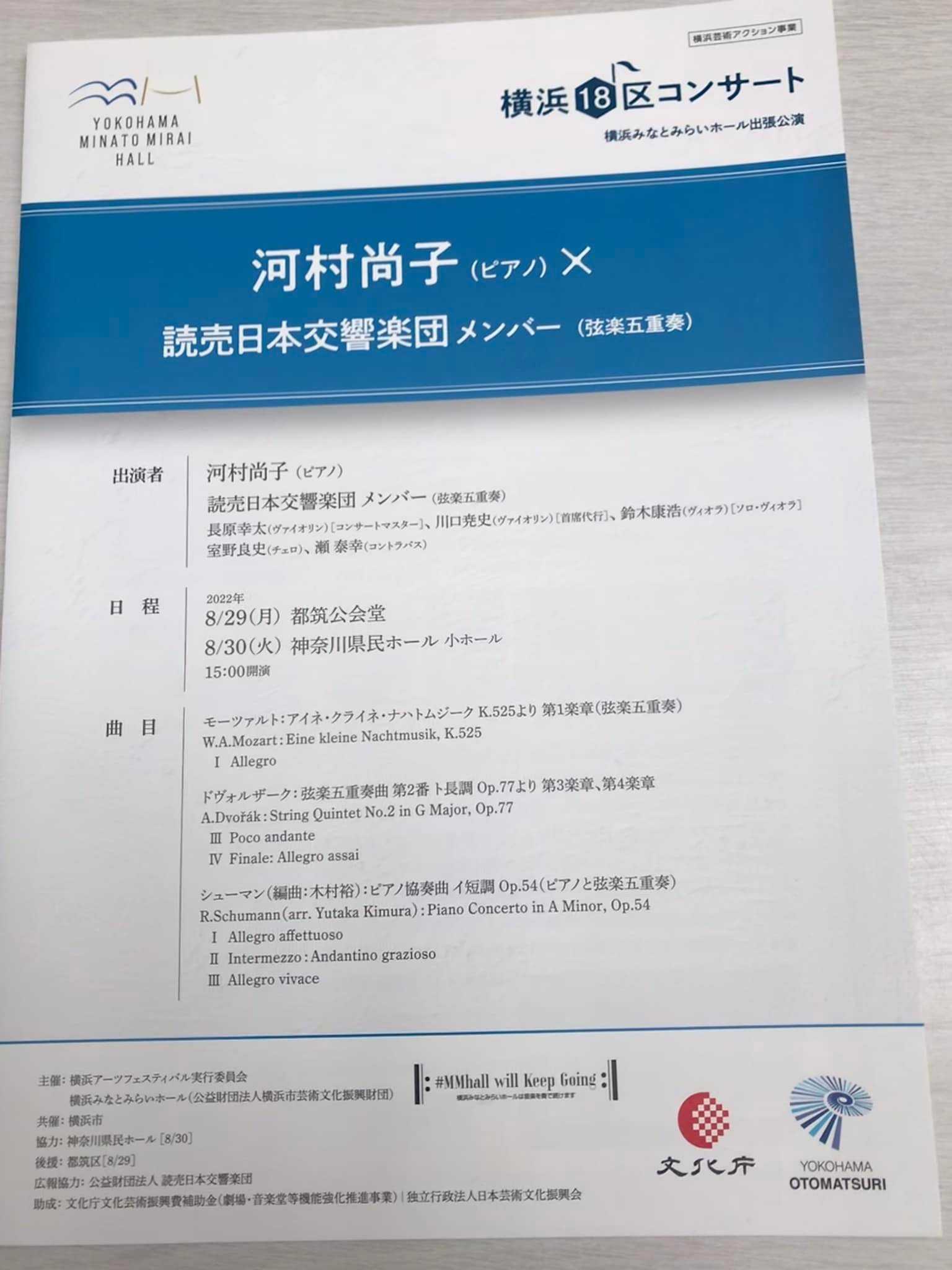 2022 Aug 29th 横浜18区コンサート 第Ⅱ期全8区 河村尚子×読売日本交響楽団メンバー@都築公会堂 河村尚子(ピアノ)