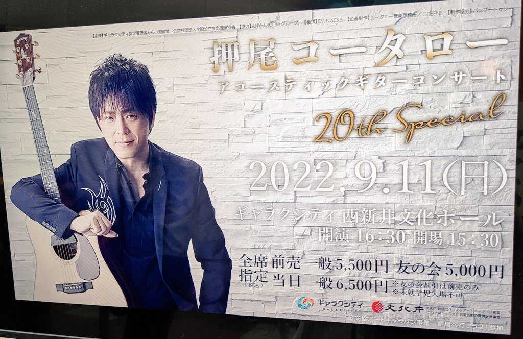 2022 Sep 11th Sun 押尾コータローアコースティックギターコンサート20th Special@ギャラクシティ西新井文化ホール