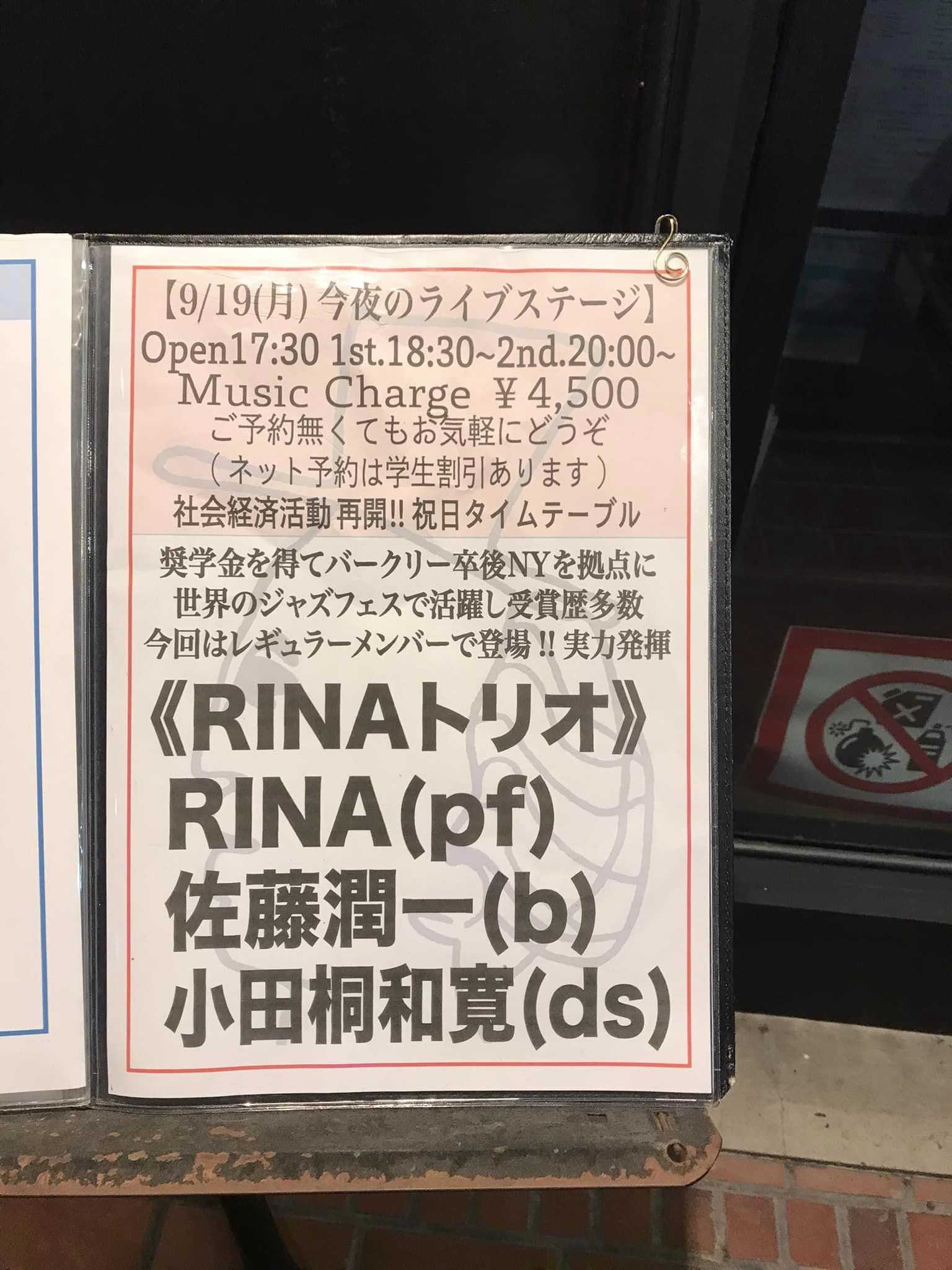 << 2022 Sep 19th「RINA Trio」@渋谷Body&Soul >>