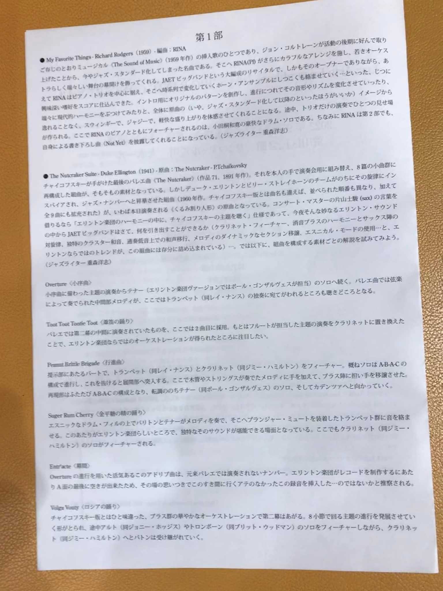 RINAさんアレンジの「1.My Favorite Things 」、RINAさん作「3.Not Yet 」、「7.Beyond the Bridge」、RINAさんのピアノソロなどWoo!と唸らされる場面がタップリの楽しいライブ。