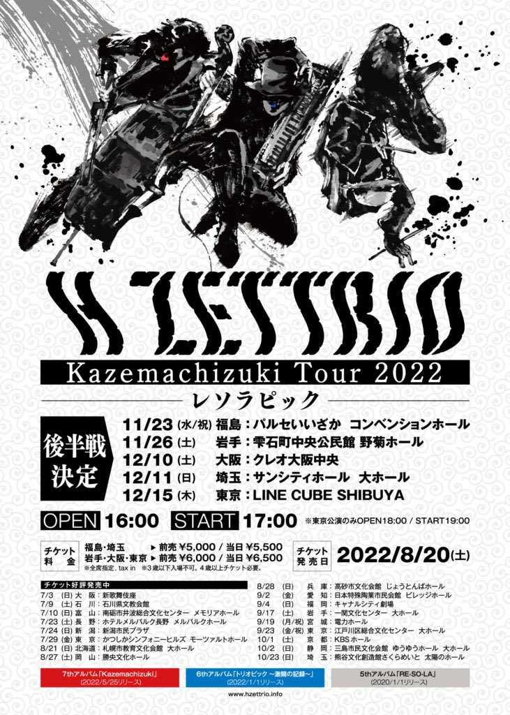 12/15(木)『H ZETTRIO Kazemachizuki Tour 2022 –レソラピック– 』@渋谷 LINE CUBE SHIBUYA
