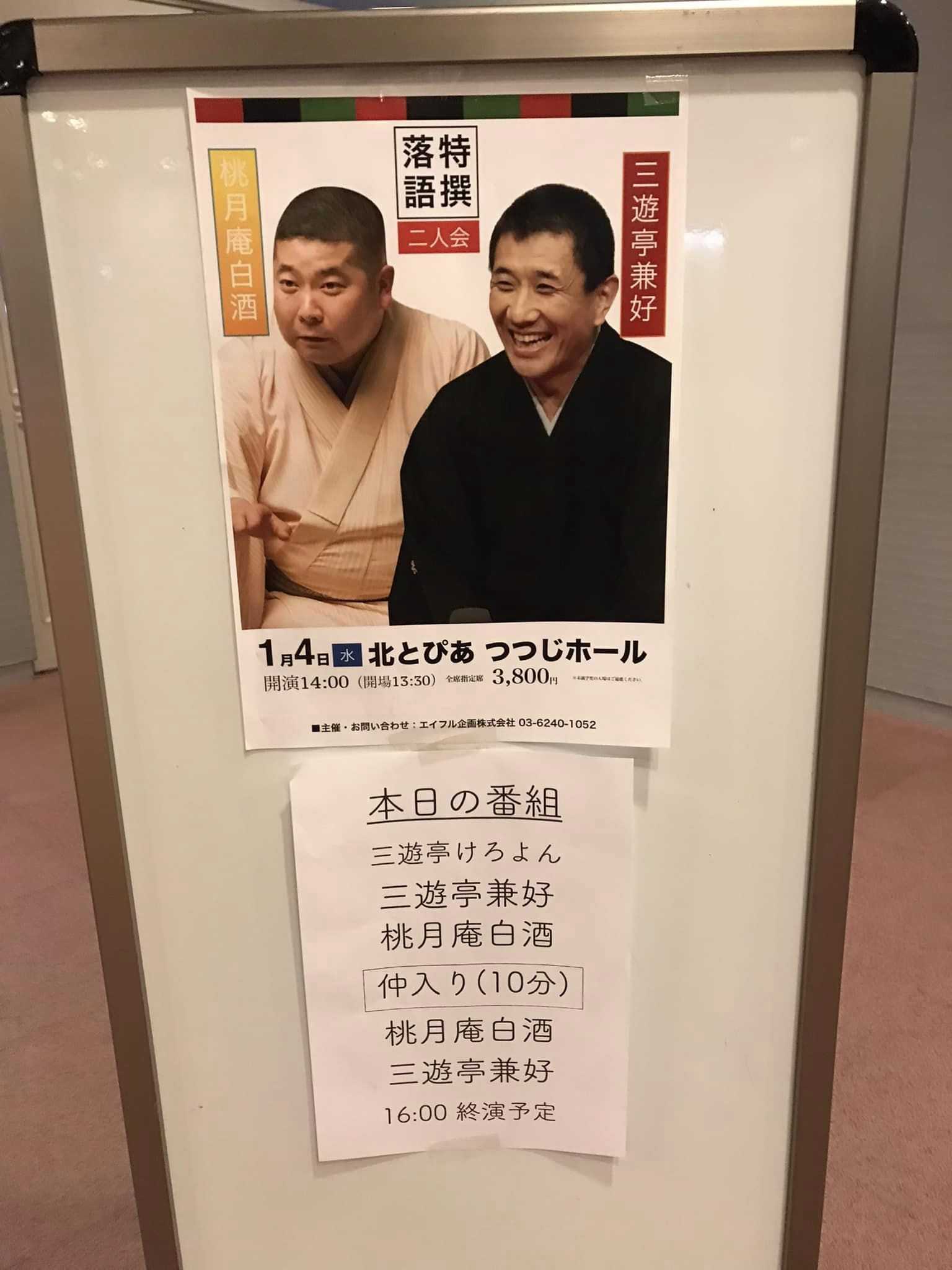 ​2023/1/4(水) 特撰落語会 桃月庵白酒・三遊亭兼好 二人会@北とぴあ つつじホール