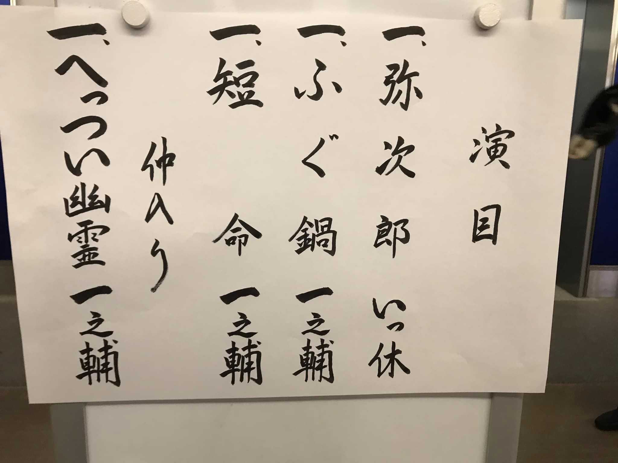ちょっと開始には間に合わず、いっ休さんの「弥次郎」の途中で席に着く。