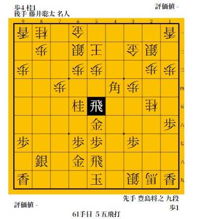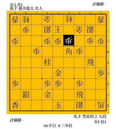 豊島九段が横歩取りの戦いに誘導した本局。双方の駒が入り乱れる乱戦を制し、待望の初白星を挙げた。