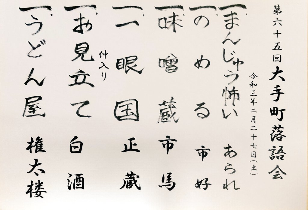​2021/2/27@大手町日経ホール 第六十五回大手町落語会