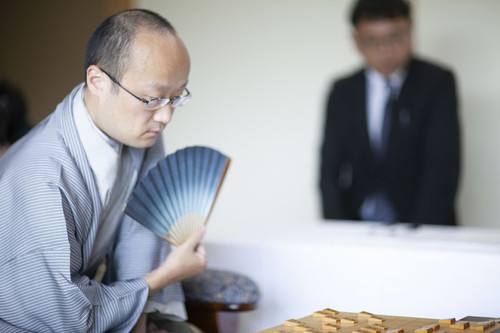 第5局は、後手の渡辺さんが雁木を志向。先手の藤井君が急戦から動き、渡辺さんも負けじと角を手放し難しい中盤戦へと突入した。渡辺さんの攻め、藤井君の受けの構図となった対局2日目。