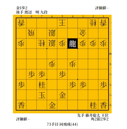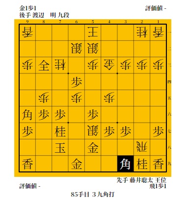 繊細なかけ引きの中で角を取り、歩を打つ踏み込みを見せるとペースを掌握。ねじり合いの中から後手陣攻略のポイントを着実に積み重ねていった。終盤戦では渡辺さんが一時挽回したものの、端角から鉄壁の守りを築いた藤井君に隙はない。冷静に後手を押し切り、勝利を飾った。