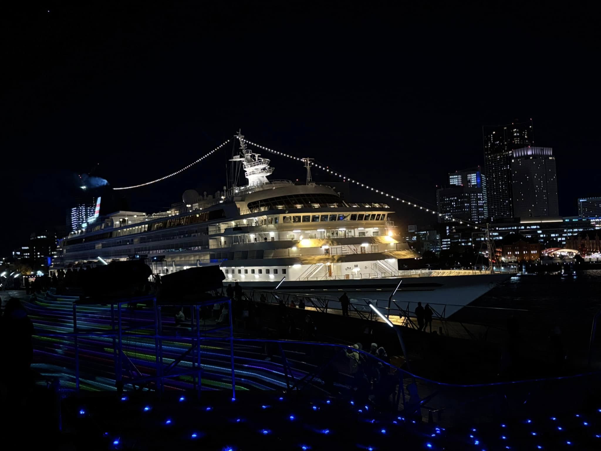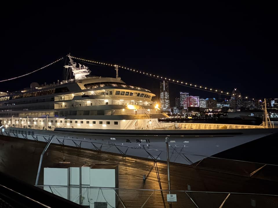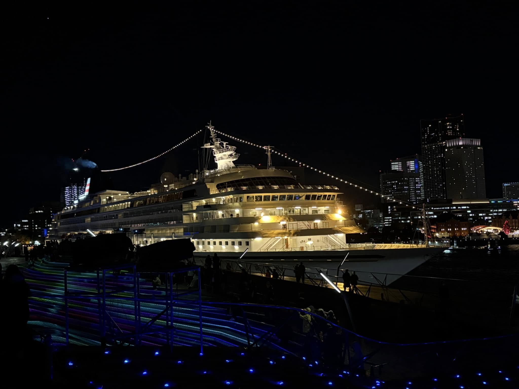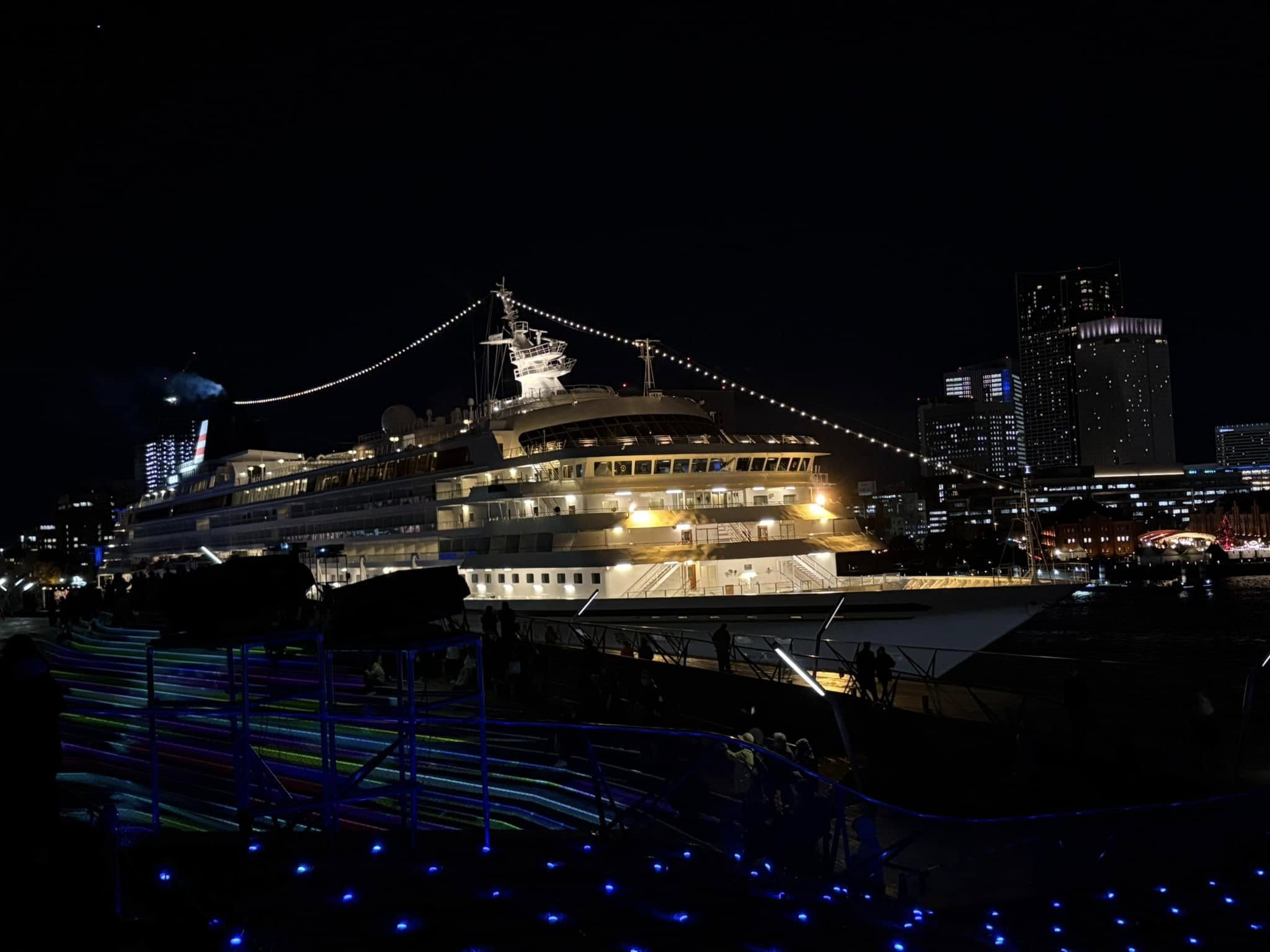ずとまよのライブの前に横浜の大桟橋のイルミネーションを見学。一昨日は客船🛳️無かったが今日は「飛鳥II」が入港していた。