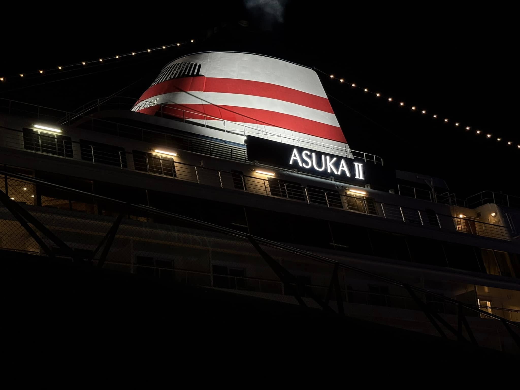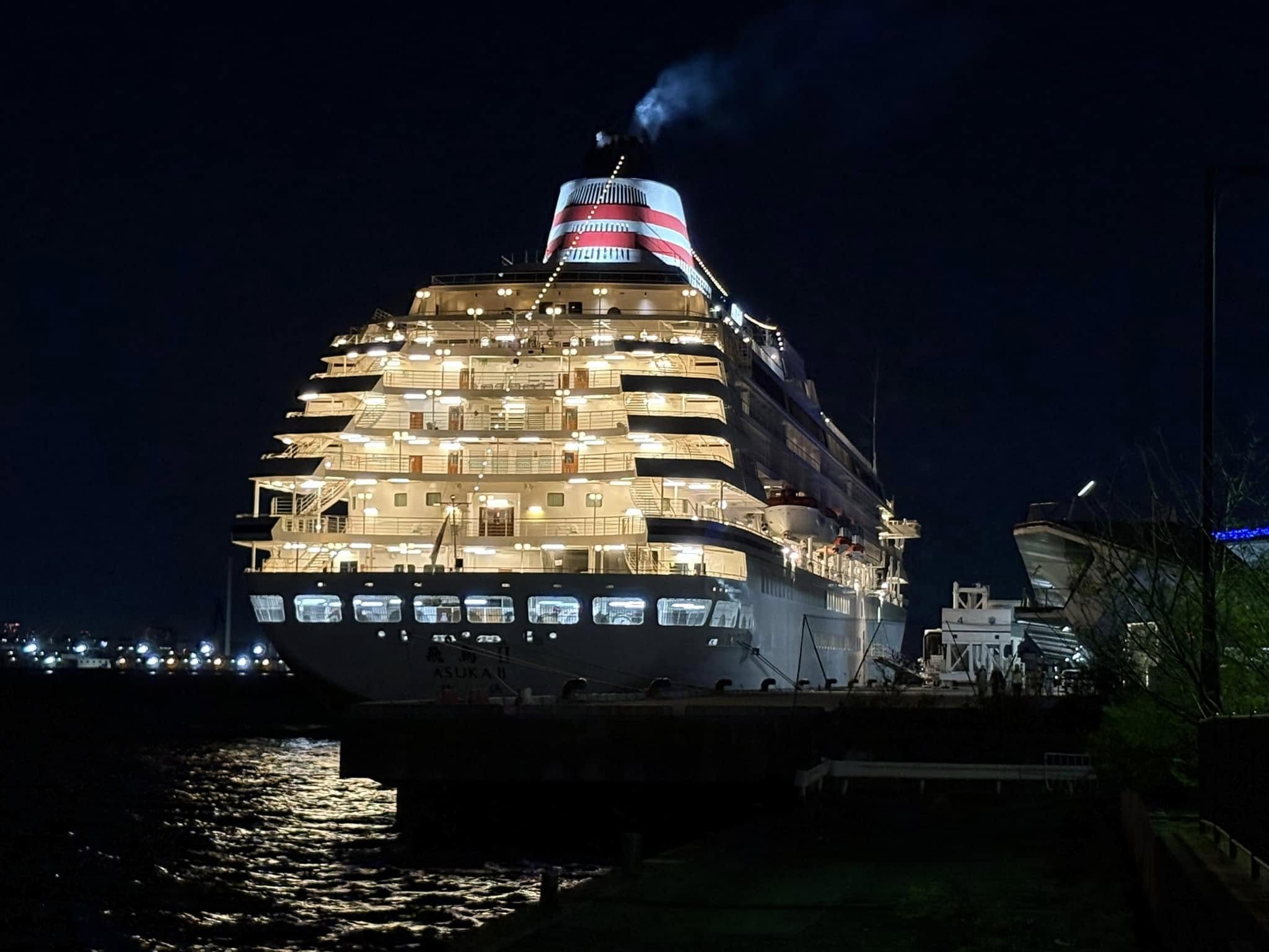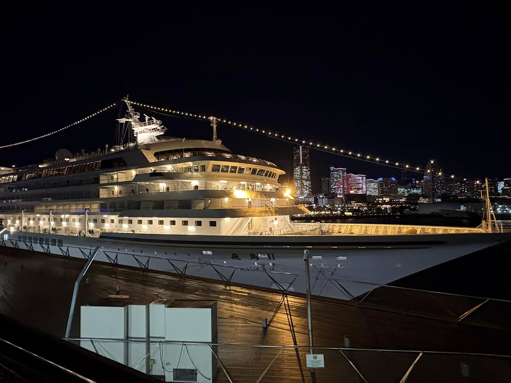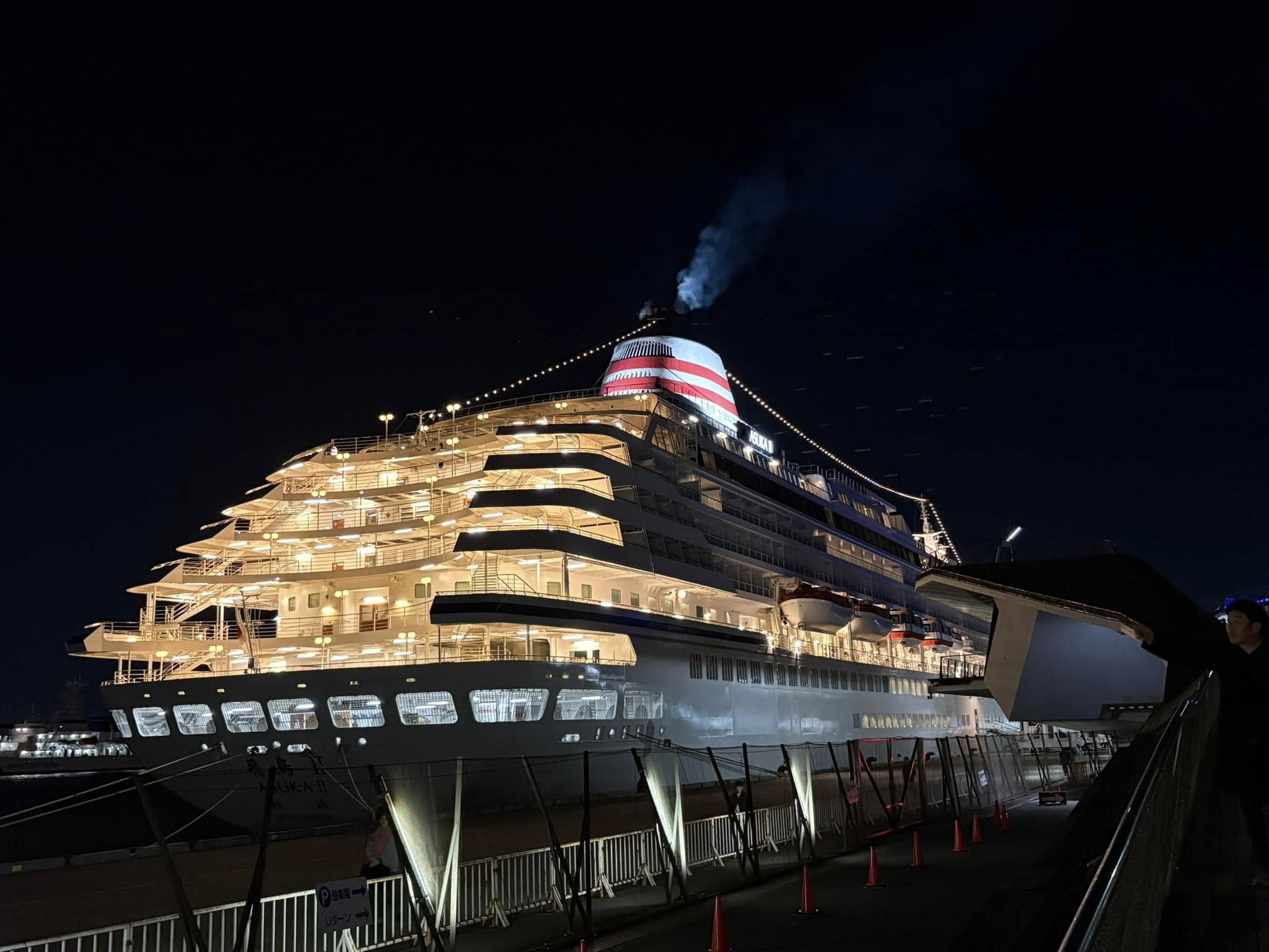 ずとまよのライブの前に横浜の大桟橋のイルミネーションを見学。一昨日は客船🛳️無かったが今日は「飛鳥II」が入港していた。