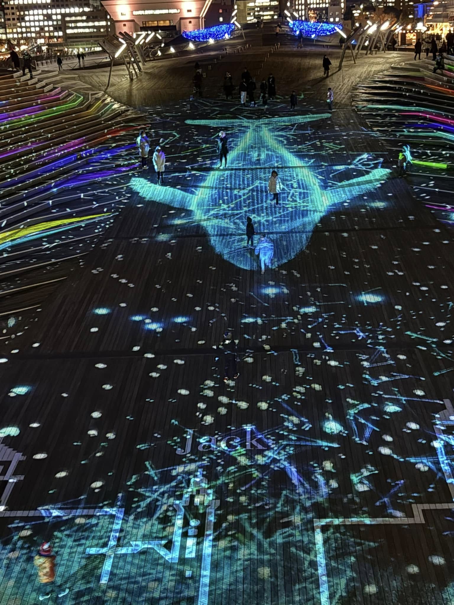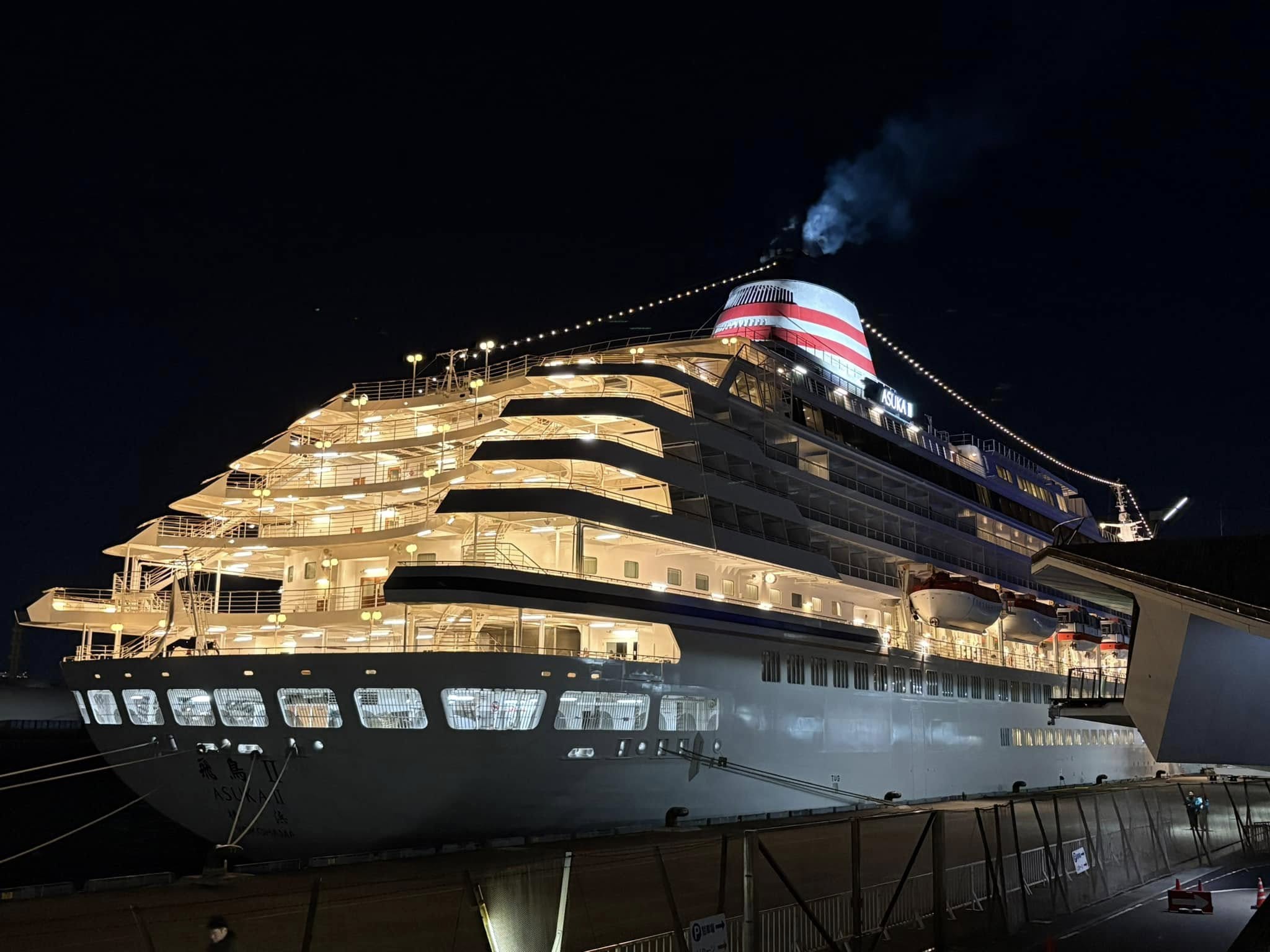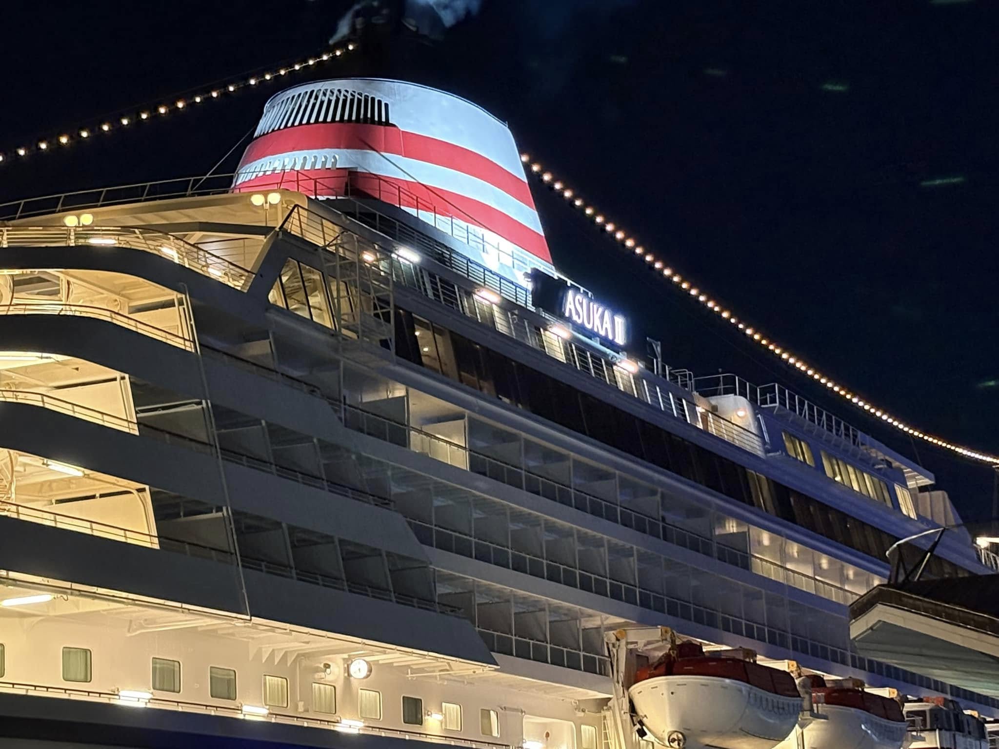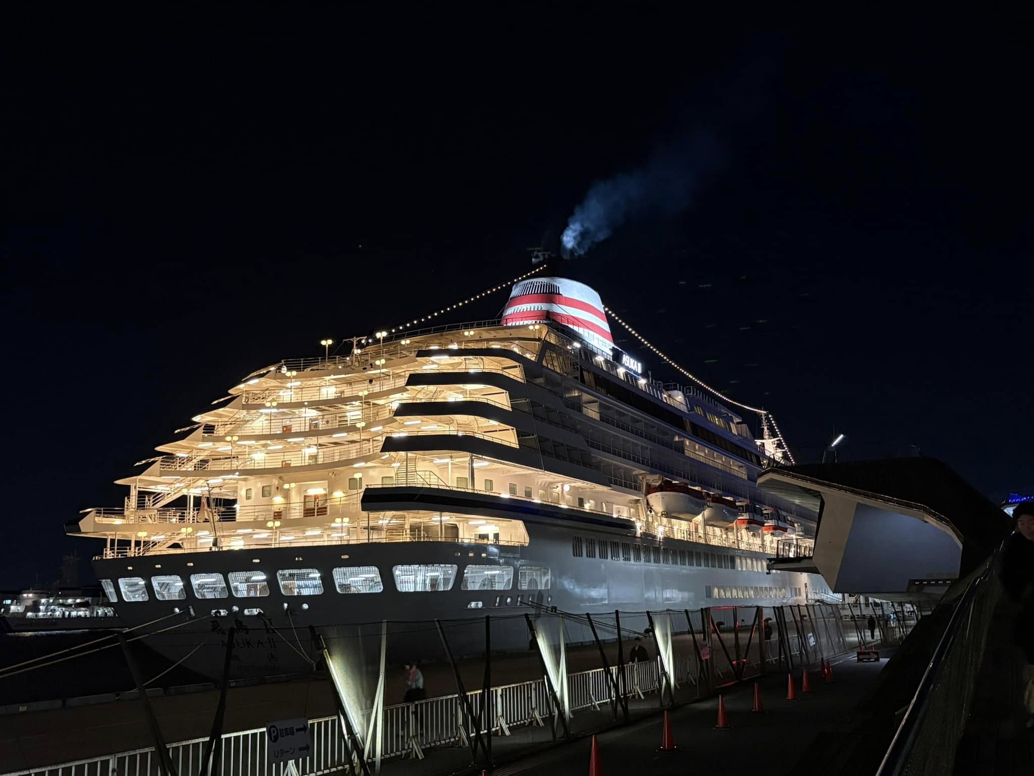 ずとまよのライブの前に横浜の大桟橋のイルミネーションを見学。一昨日は客船🛳️無かったが今日は「飛鳥II」が入港していた。