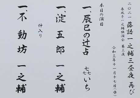 << 2021年11月17日「2021落語一之輔三昼夜 再び」第3夜@よみうり大手町ホール>>