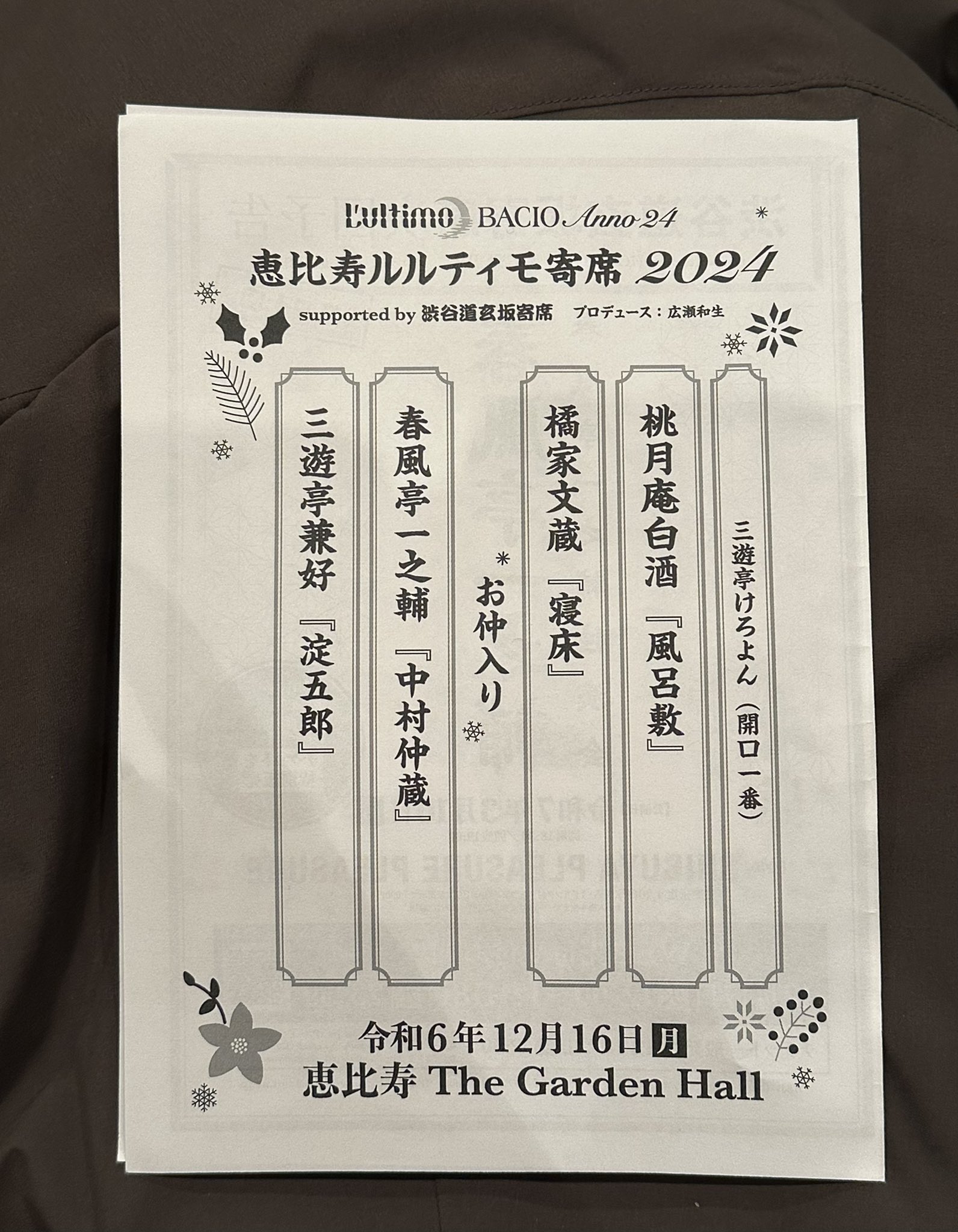 2024/12/16@恵比寿 The Garden Hall  恵比寿ルルティモ寄席 2024 【ホットスタッフ/広瀬和生さんプロデュース】