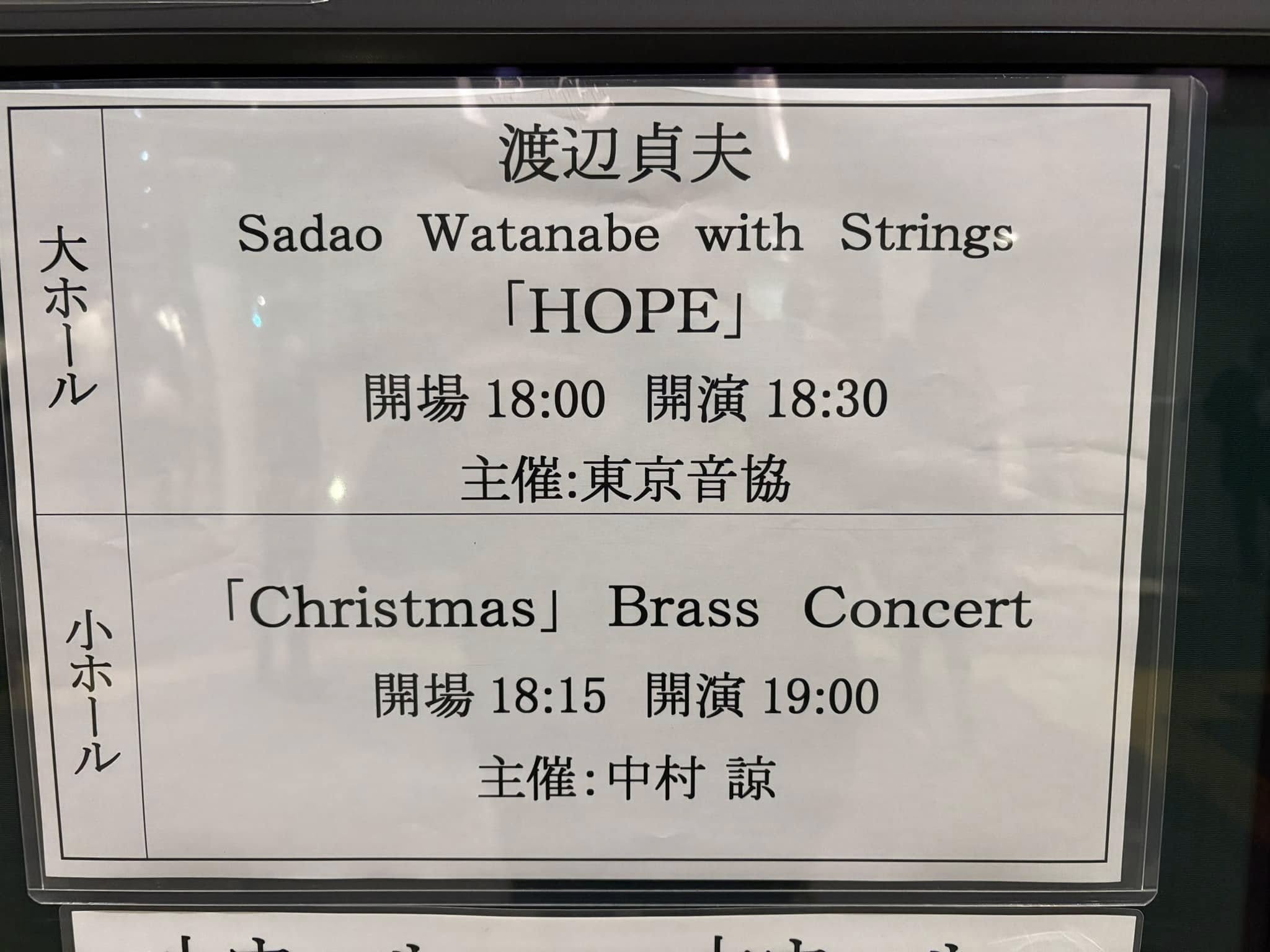 今日はナベサダさんのライブを聴きにめぐろパーシモンホールに参上!