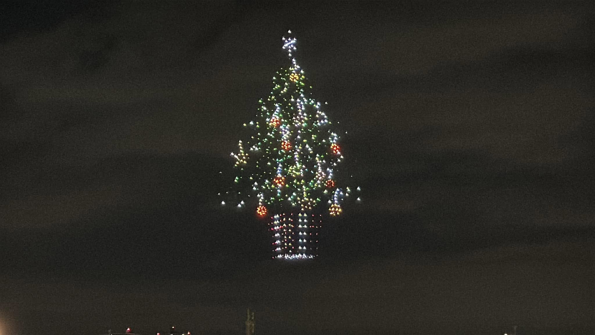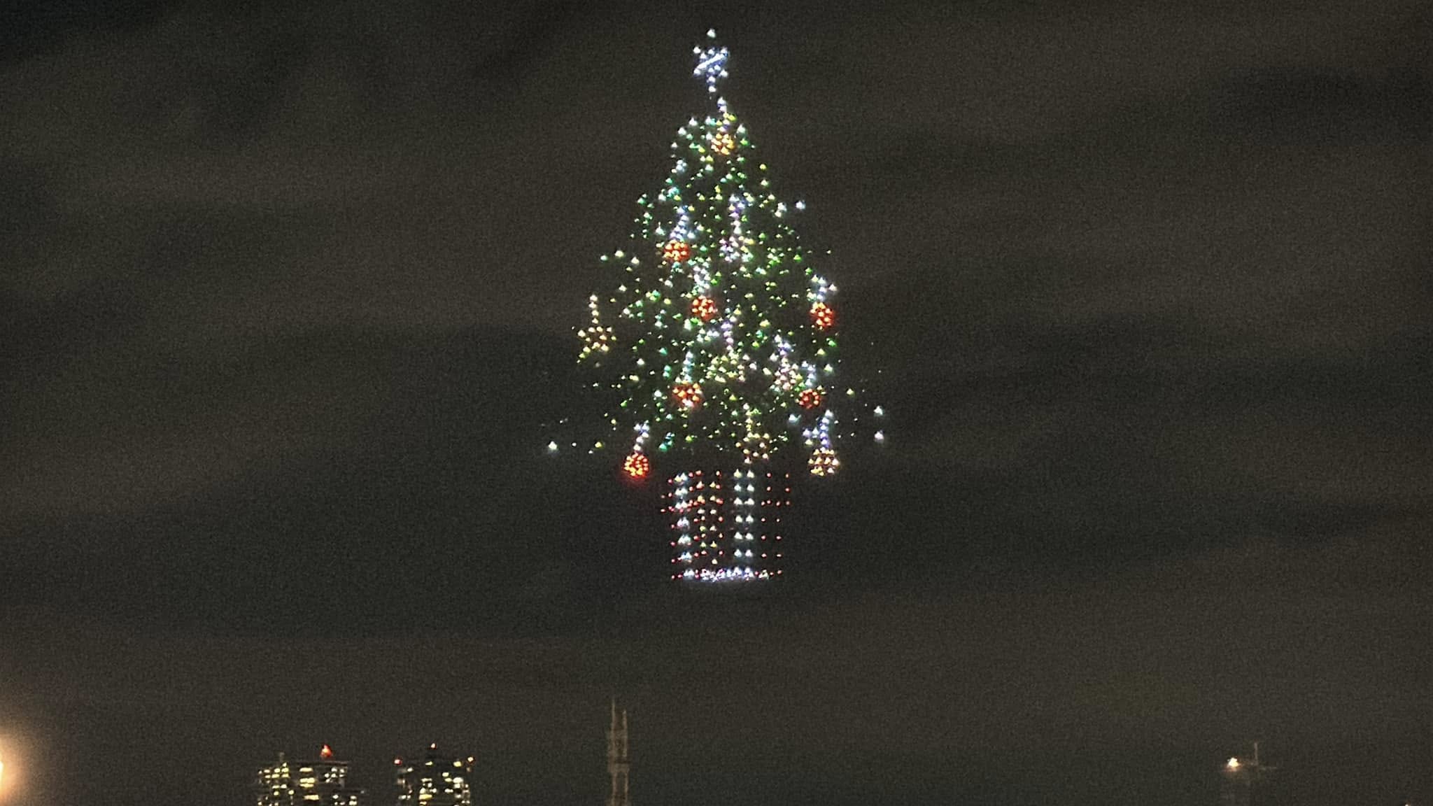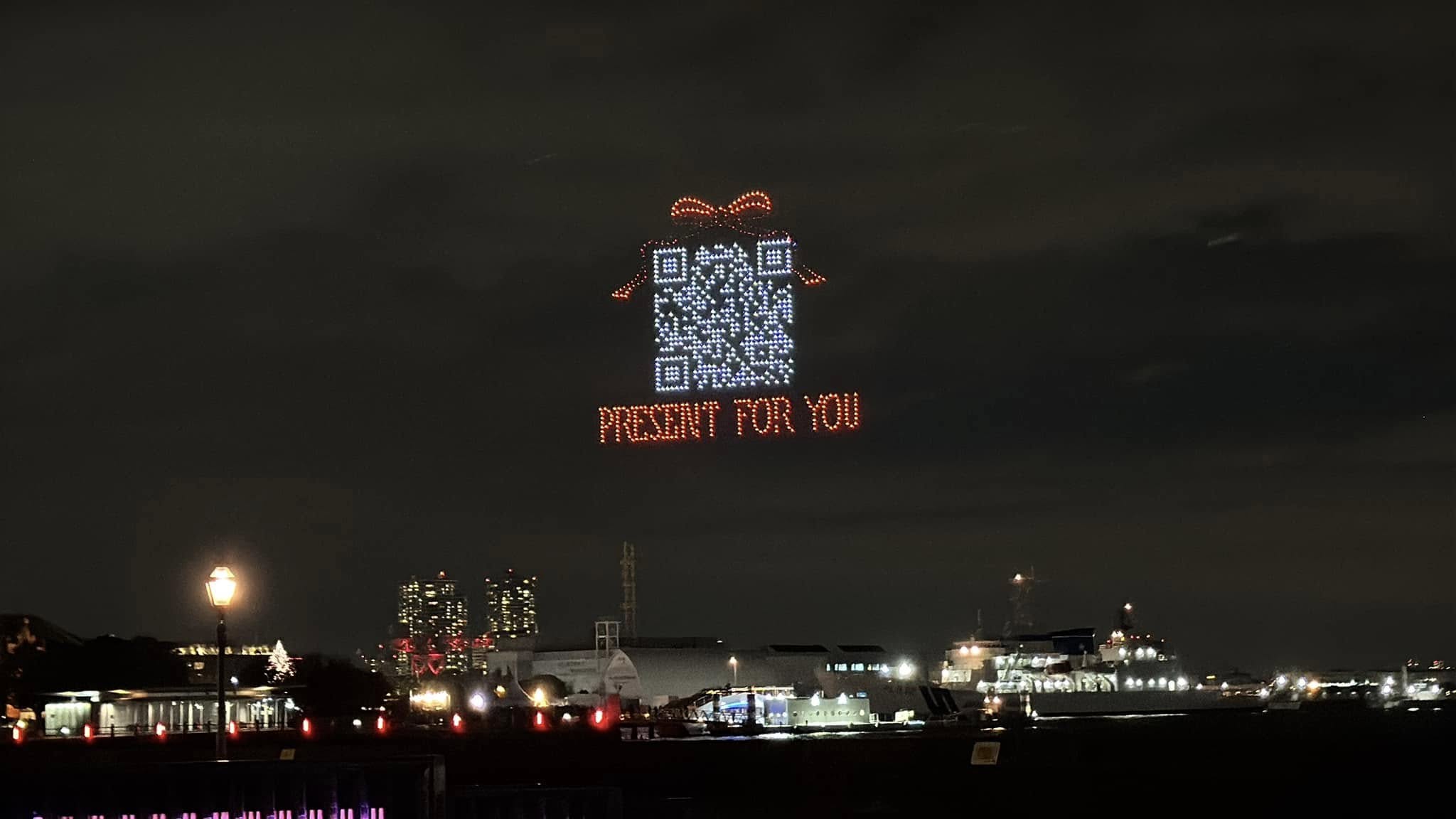参考)2024/12/07 sat. ​ ドローンShow 「​ コカ・コーラ クリスマスドローンショー2024 ​」                ( 2024年12月7日(土) 19:45頃  場所:横浜港 新港ふ頭 付近)