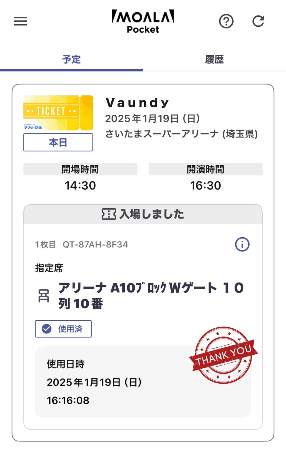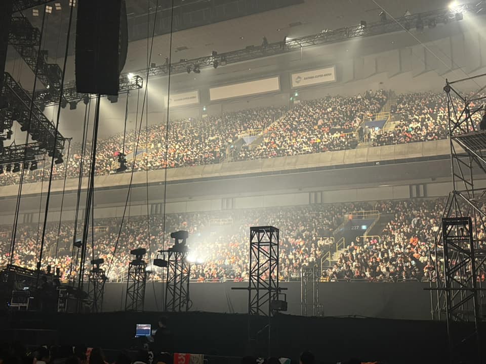 チケットをダウンロードしたらA10の10列目だった。結構前の方かな?と思いながら「さいたまスーパーアリーナ」に入ったが、本当に10列目。今日はU-NEXTのナマ中継があったため、アーム式のカメラがカナリ邪魔だったが、肉眼でVaundyの歌う姿を観れて至福の時だった。