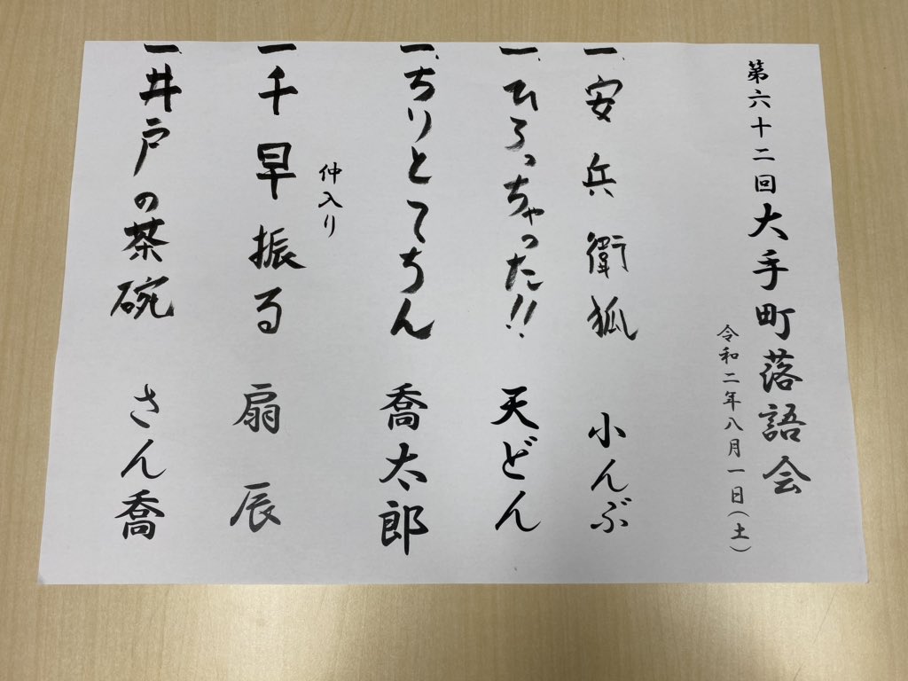 2020年8月1日 第62回【大手町落語会】​