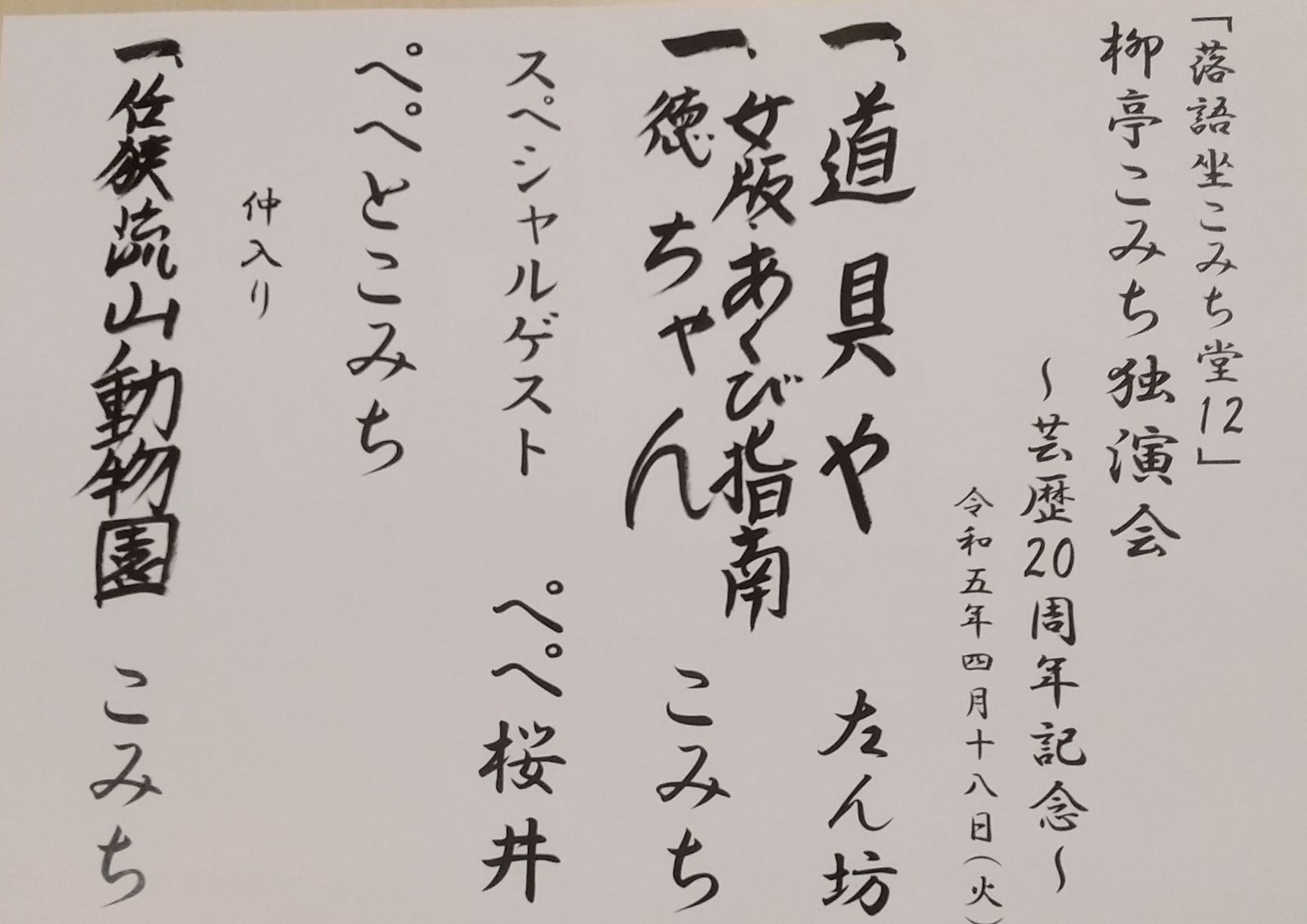 ​2023年4月18日(火)「落語坐こみち堂12  柳亭こみち独演会 ~芸歴20周年記念」@国立演芸場​