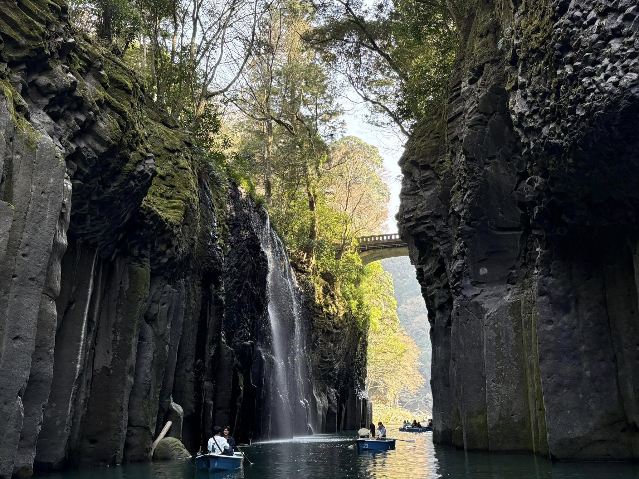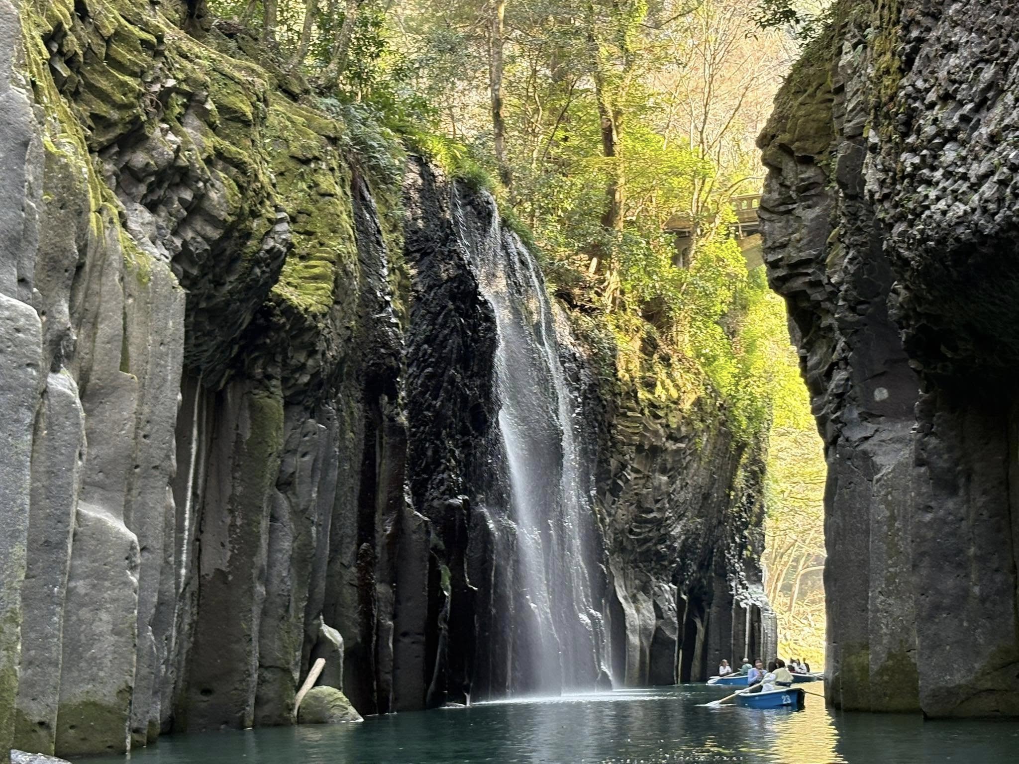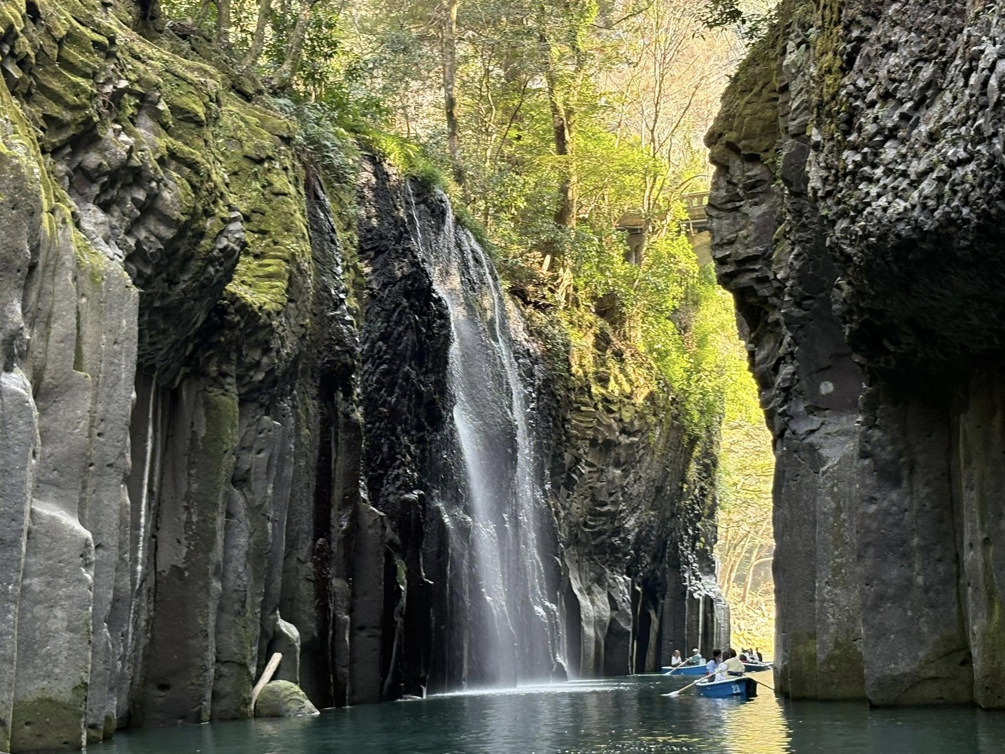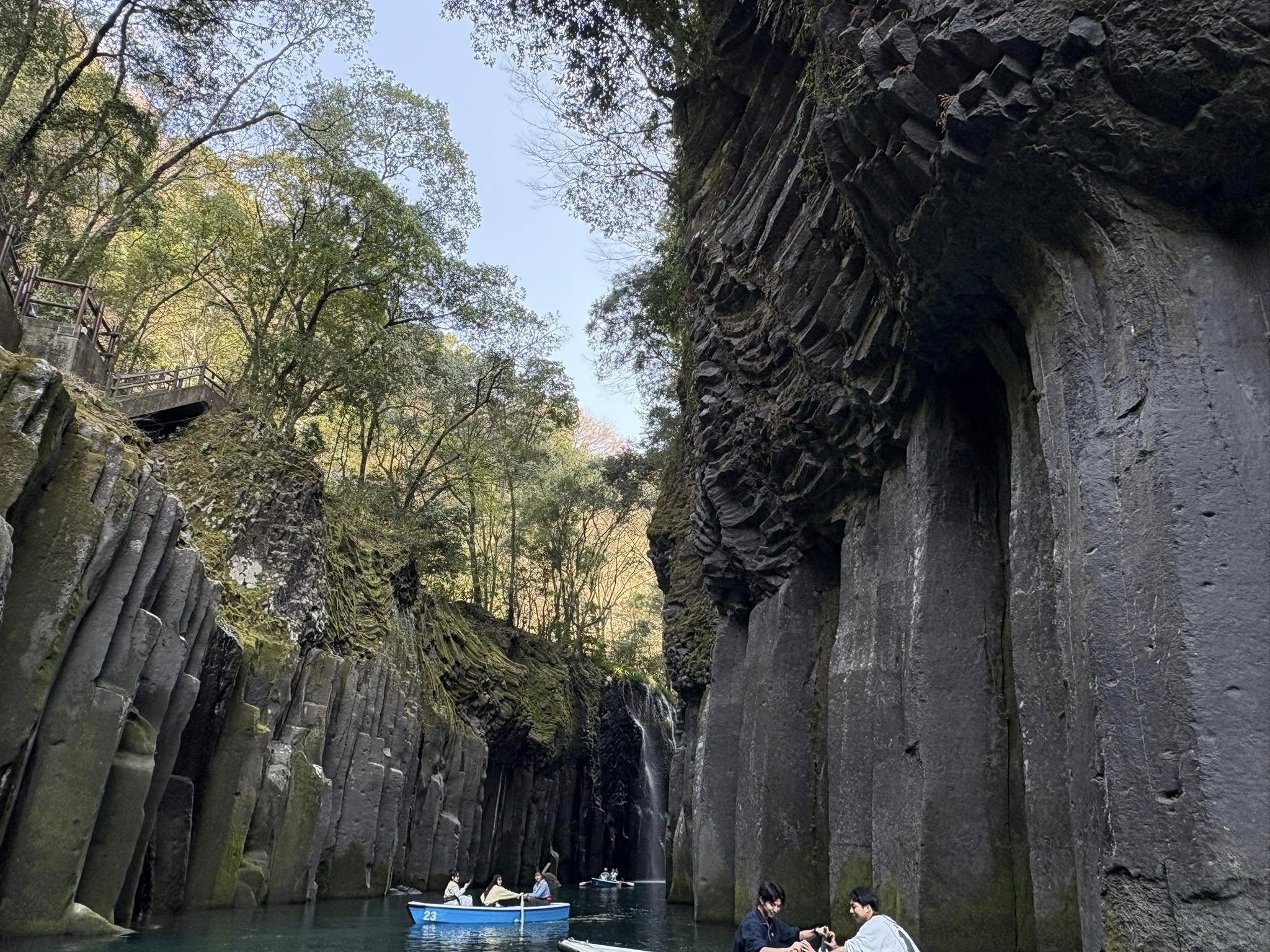 「高千穂峡貸ボート🚣‍♂️🚣‍♀️」に乗って、真名井の滝などの高千穂峡の名所をボート目線で探訪。​