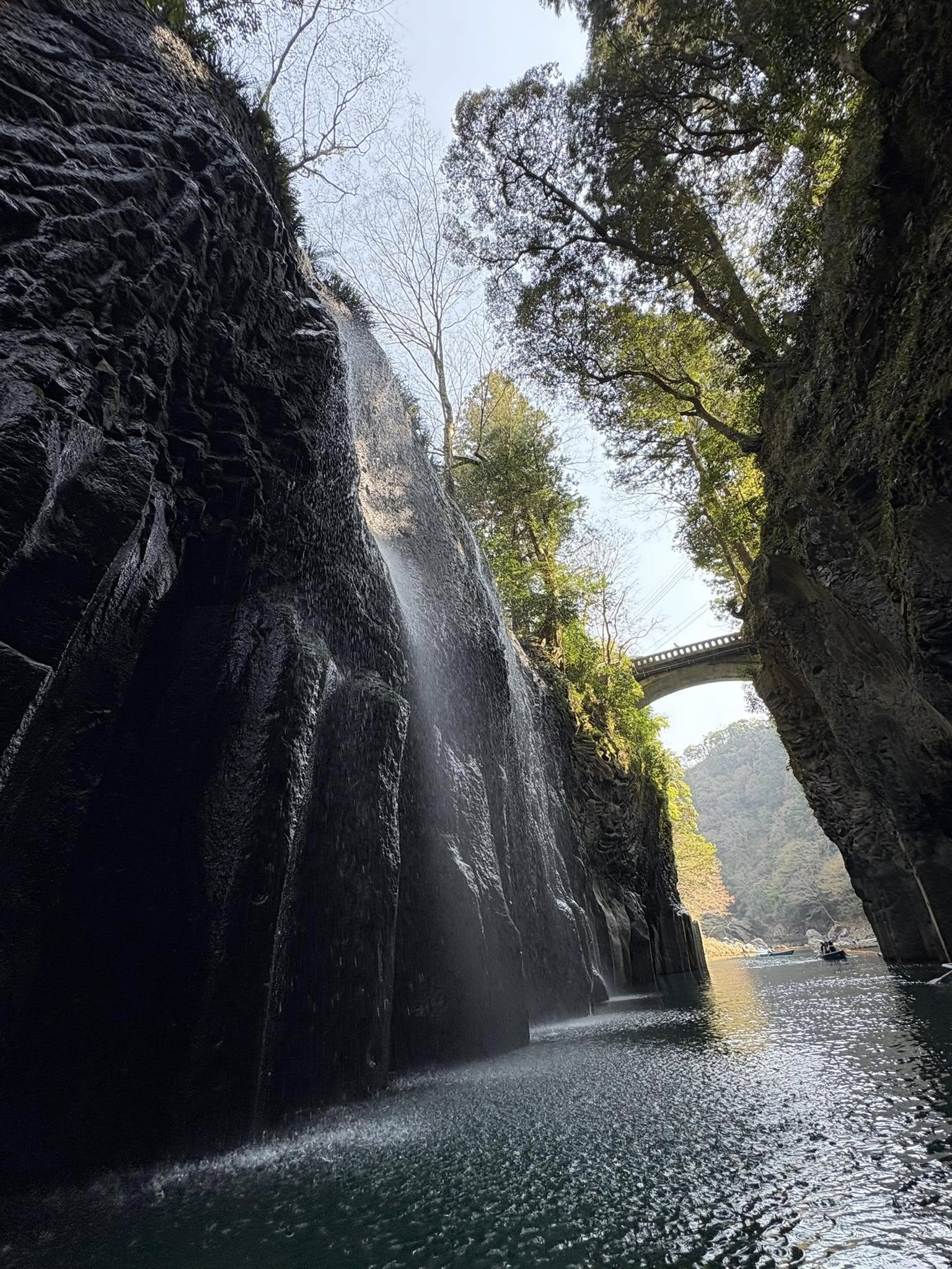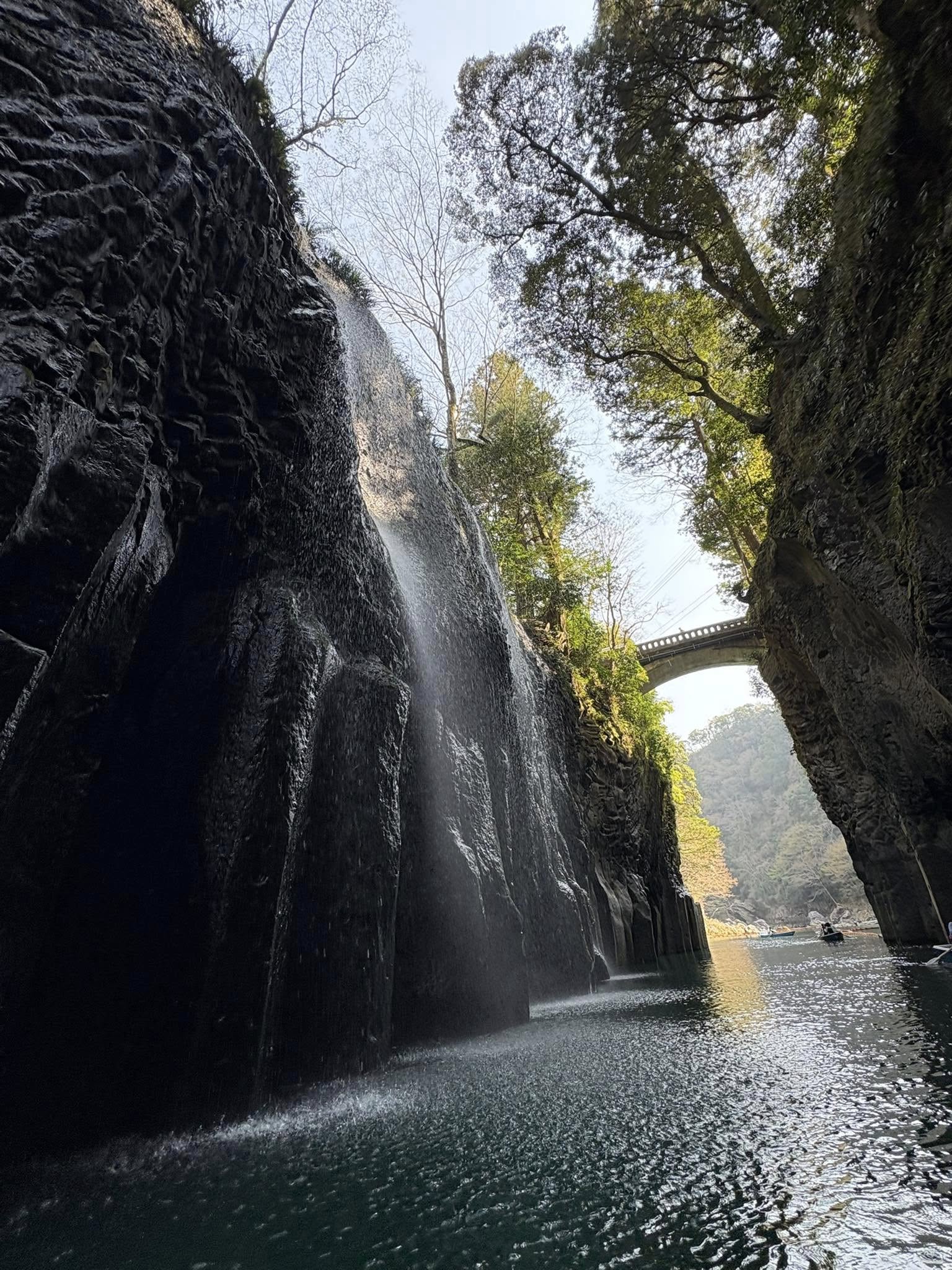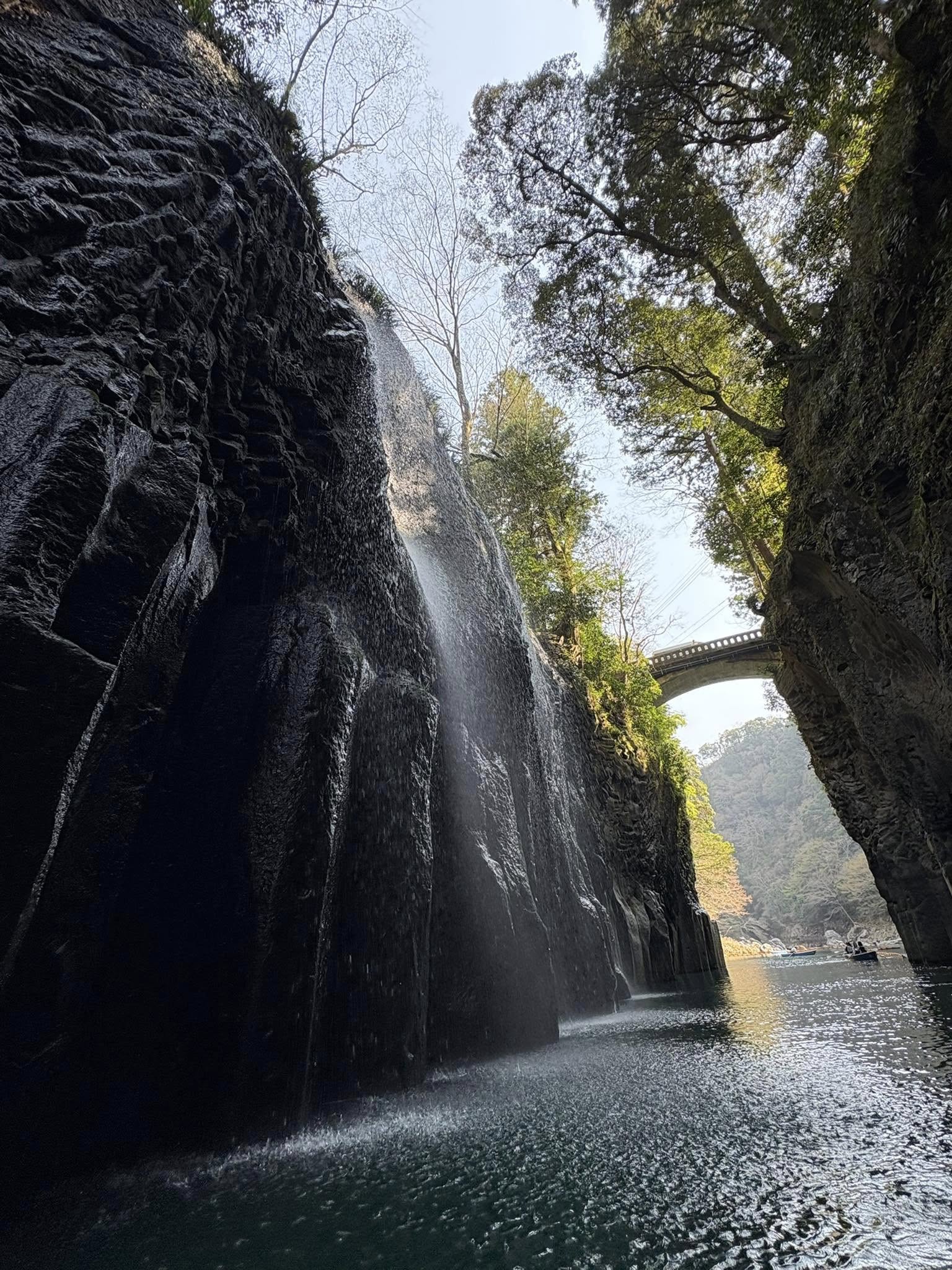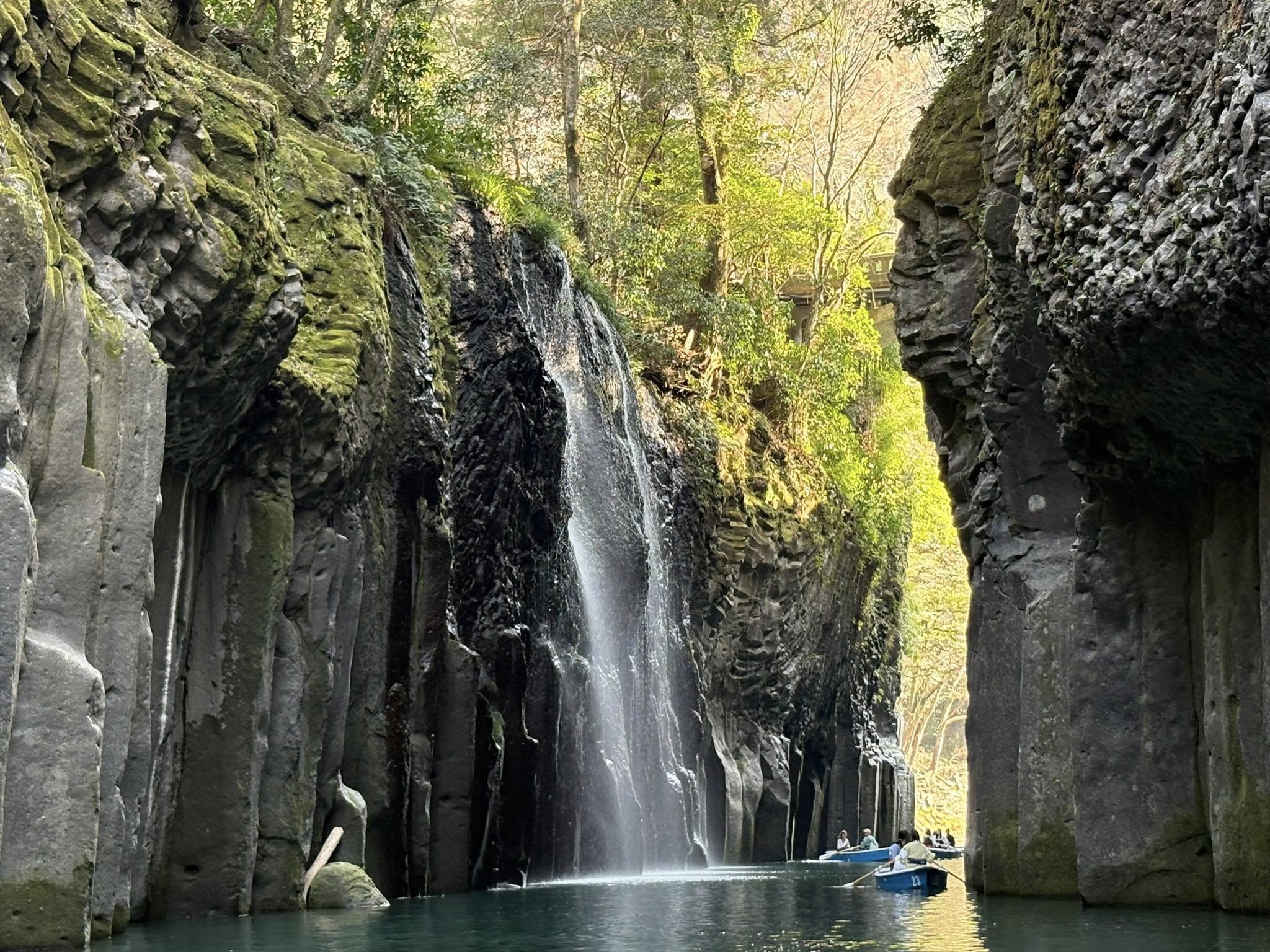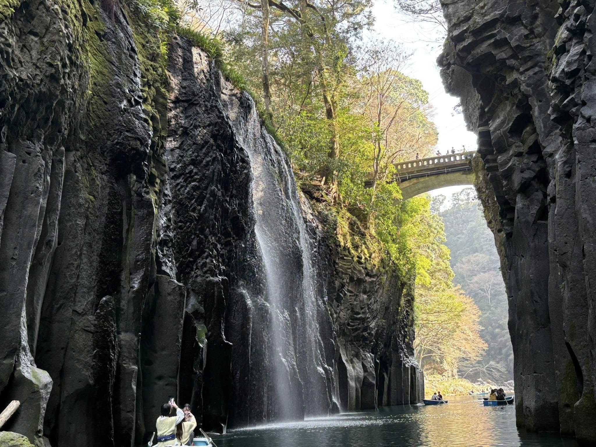 「高千穂峡貸ボート🚣‍♂️🚣‍♀️」に乗って、真名井の滝などの高千穂峡の名所をボート目線で探訪。​
