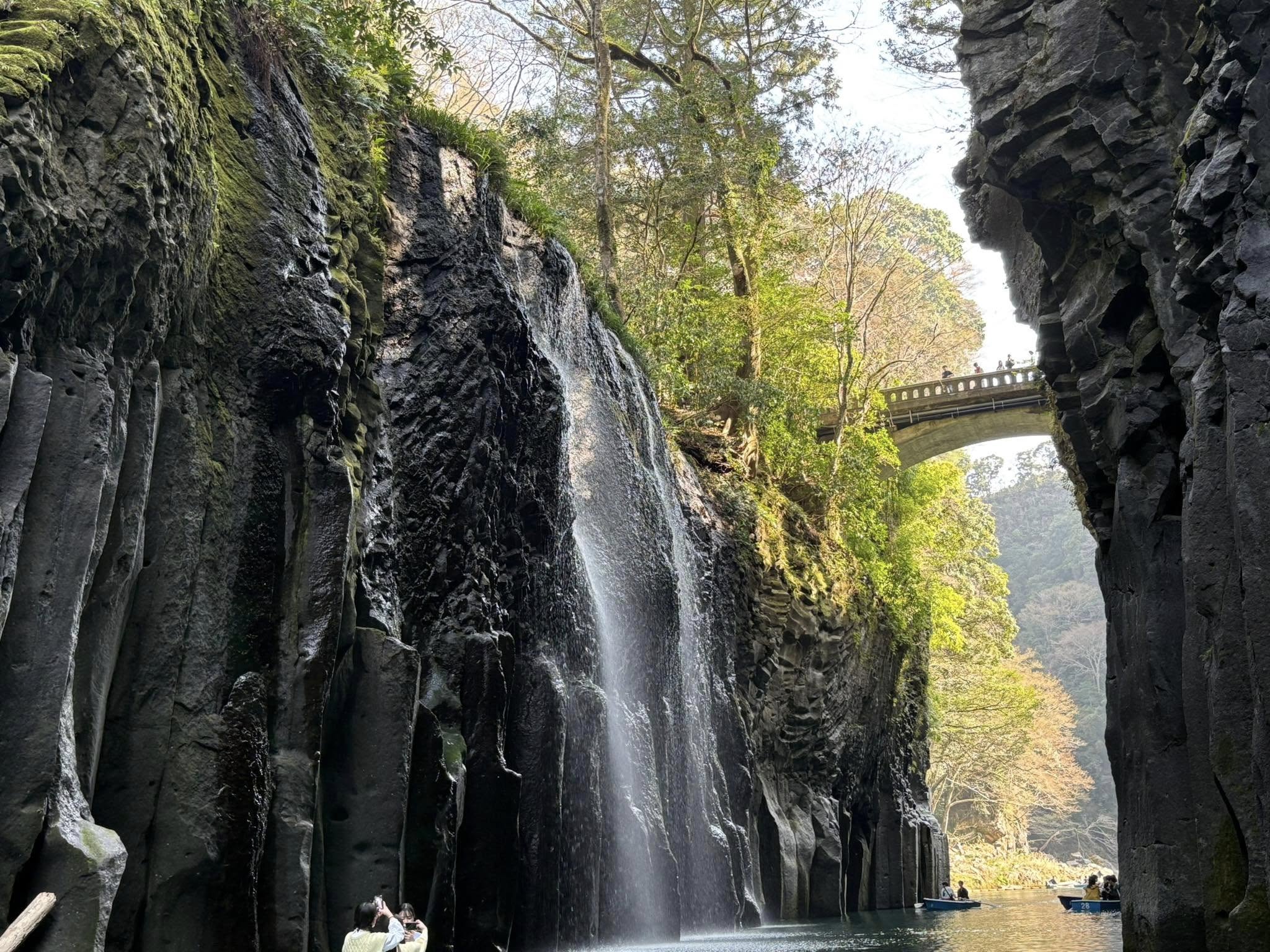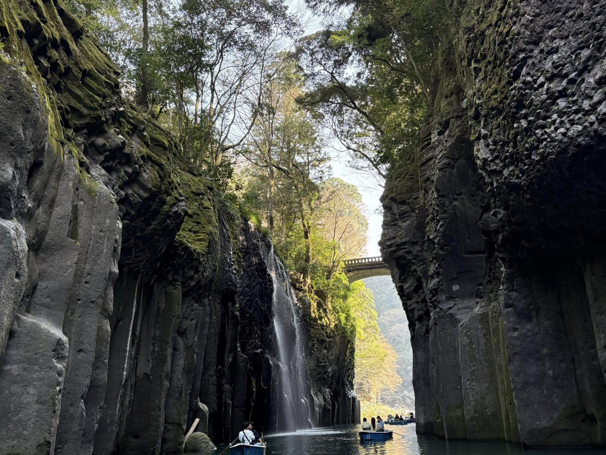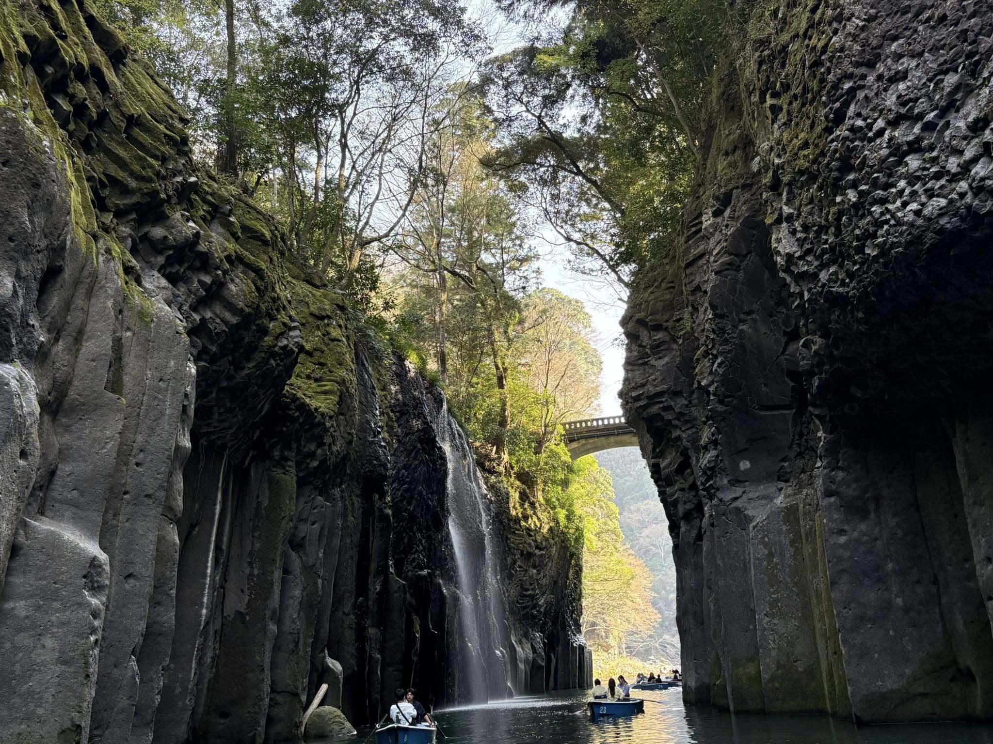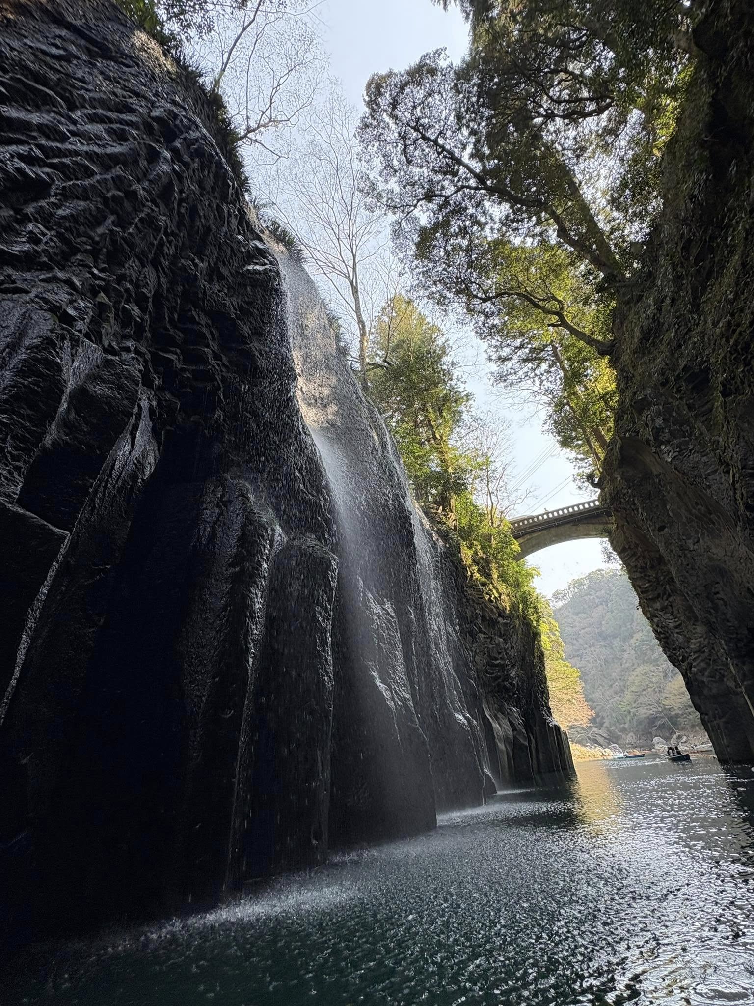 「高千穂峡貸ボート🚣‍♂️🚣‍♀️」に乗って、真名井の滝などの高千穂峡の名所をボート目線で探訪。​
