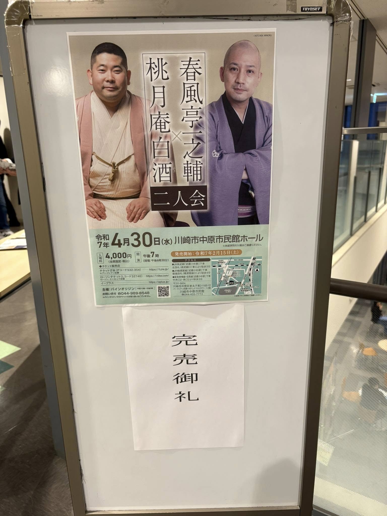 ​2025/4/30(水) 桃月庵白酒・春風亭一之輔二人会@川崎市中原市民館ホール