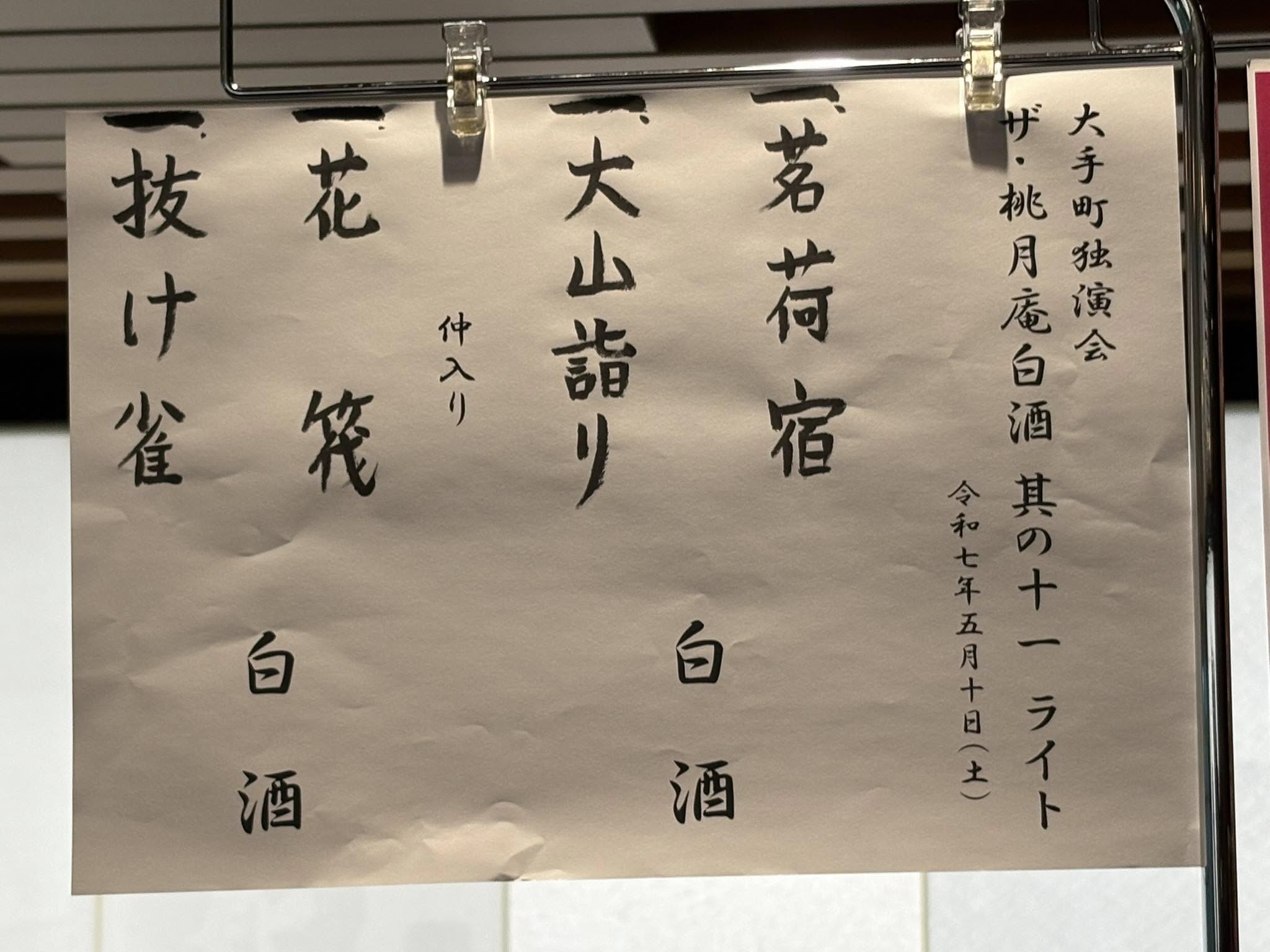 ​2025/5/10@よみうり大手町ホール 大手町独演会 ザ・桃月庵白酒 其の十一ライト