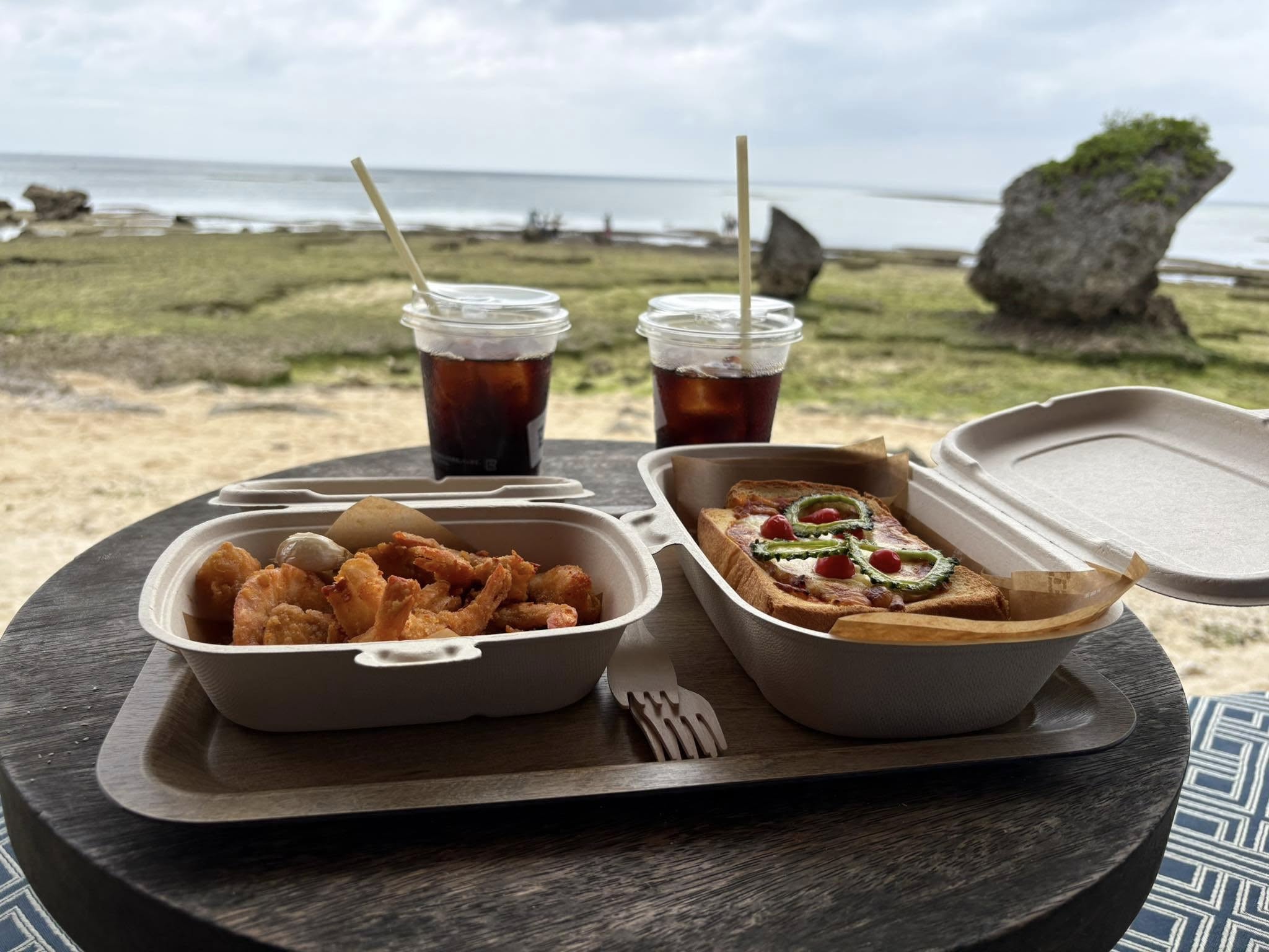 琉球村の後は残波岬、三矢本舗、万座毛などを観光。5/13