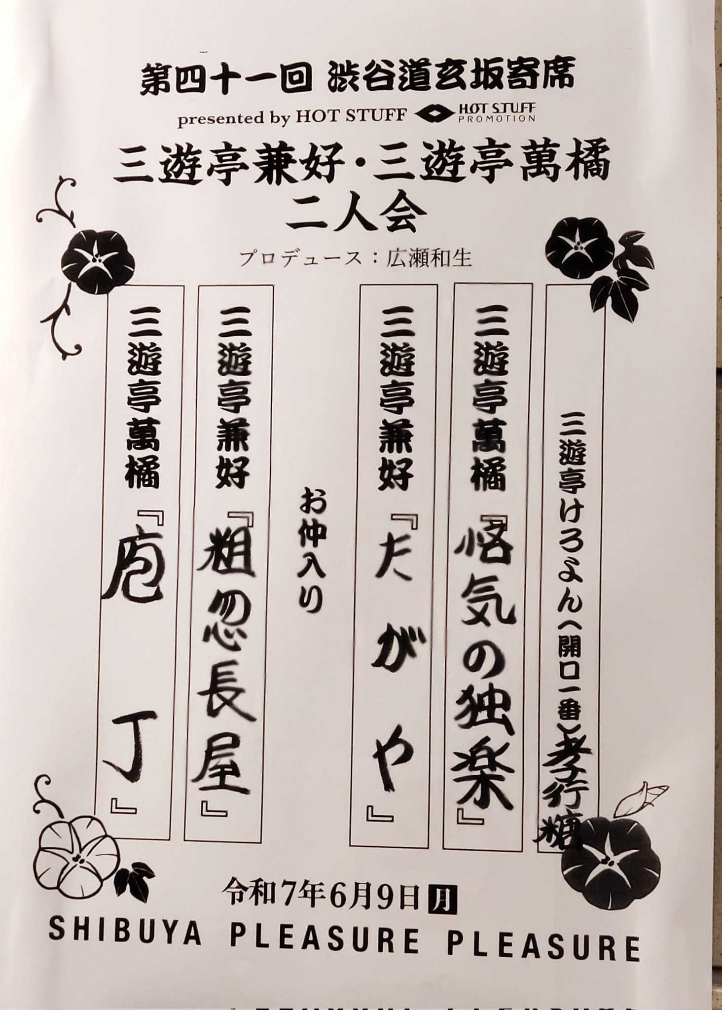 ​2025年6月9日 第四十一回 渋谷道玄坂寄席 三遊亭兼好・三遊亭萬橘二人会@SHIBUYA PLEASURE PLEASURE